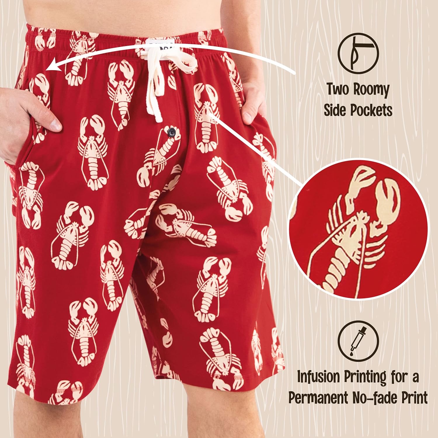 Lazy One Pajama Shorts for Men, Men's Pajama Bottoms, Sleepwear(Lobster)