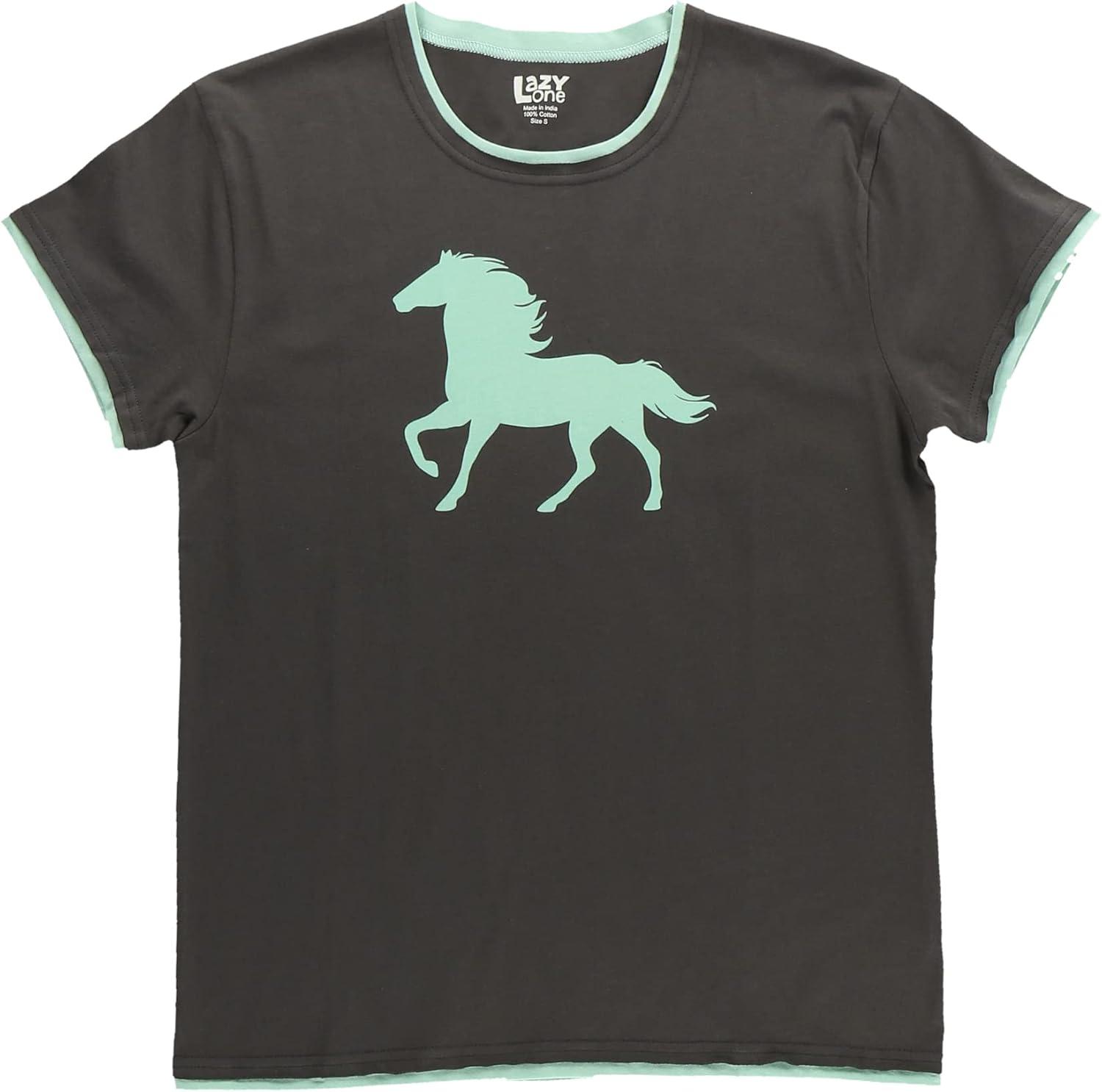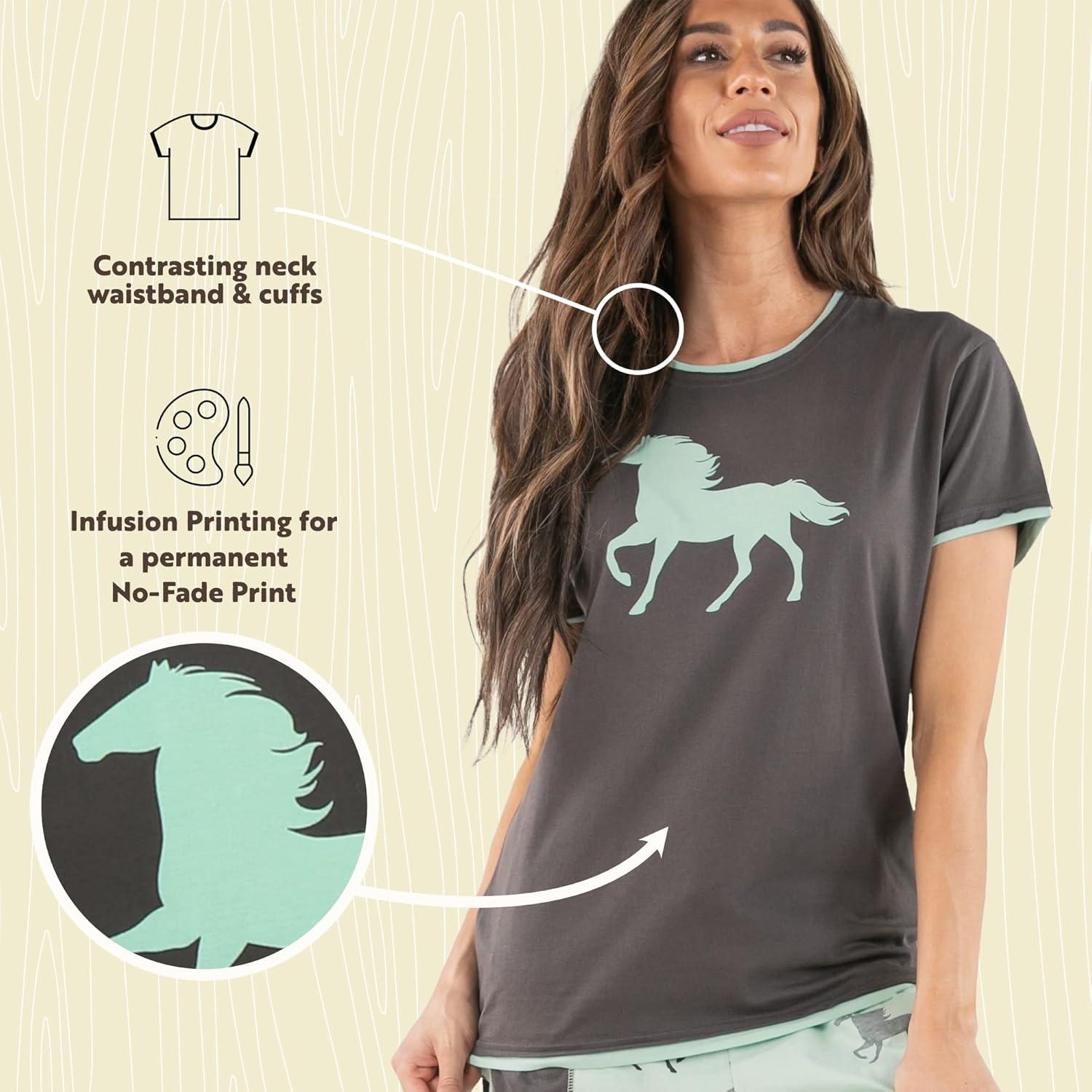 Lazy One Pajamas for Women, Cute Farm Pajama Pants and Top Separates(Mint Horse Pajama Shirt)