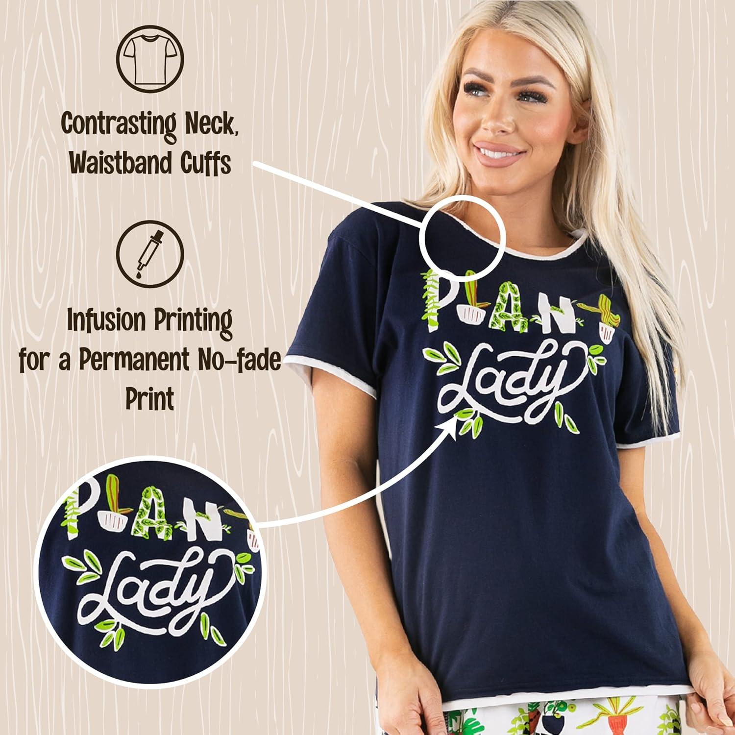 Lazy One Pajamas for Women, Cute Garden and Bear Pajama Pants and Top Separates(Plant Lady Womens Pajama Shirt)