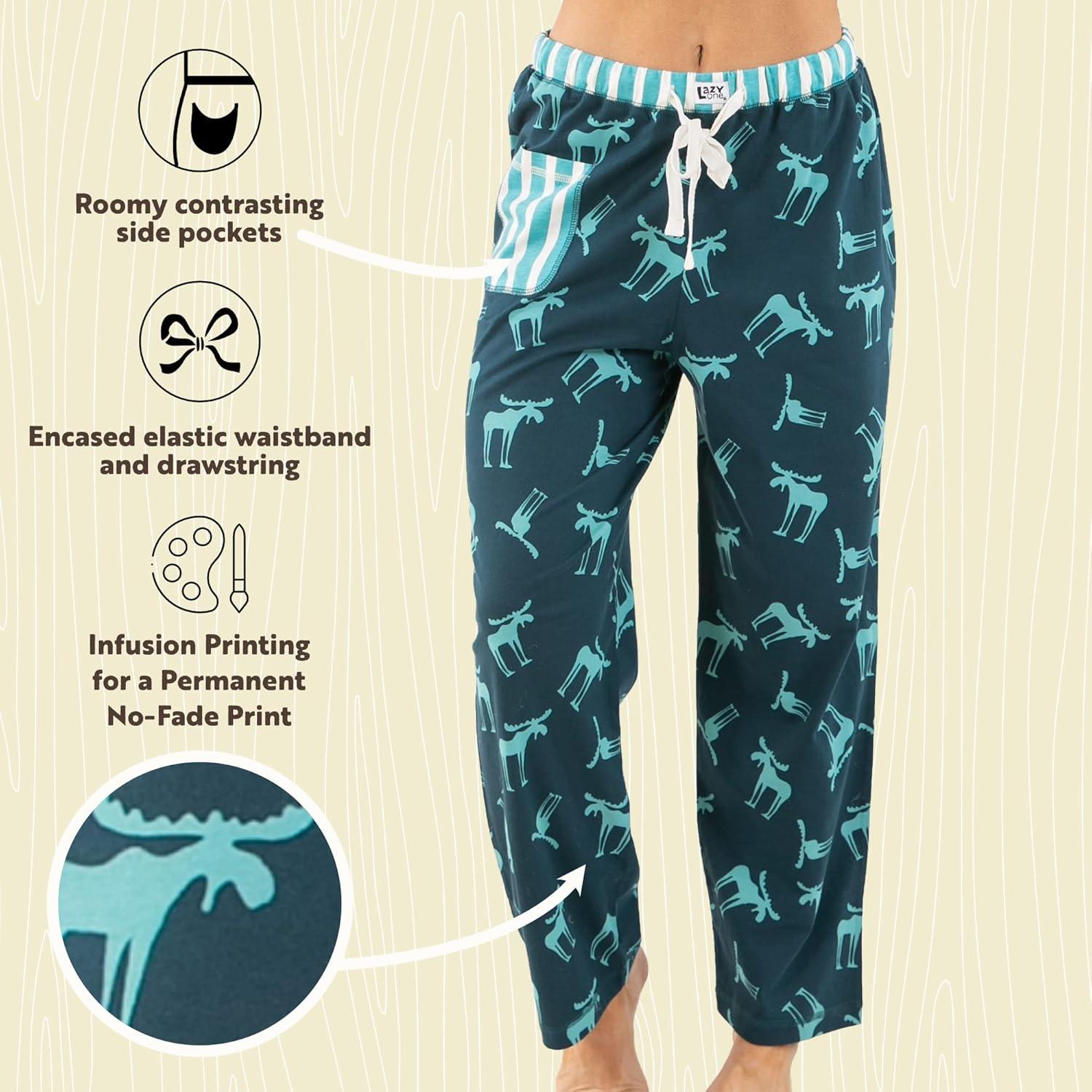 Lazy One Pajamas for Women, Cute Moose Pajama Pants and Top Separates(Funky Moose Blue Womens Pajama Pant)