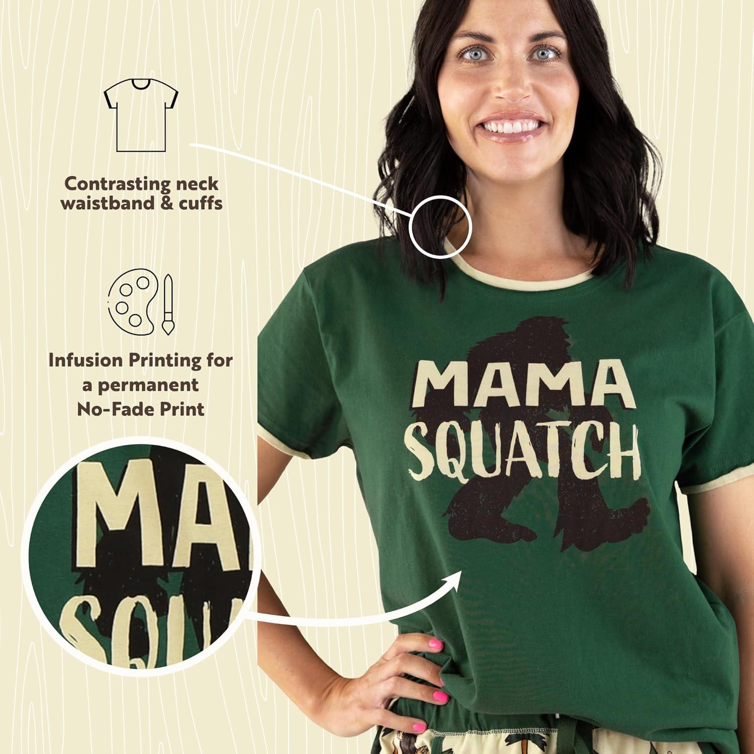 Lazy One Pajamas for Women, Cute Moose Pajama Pants and Top Separates(Mama Squatch Pajama Shirt)