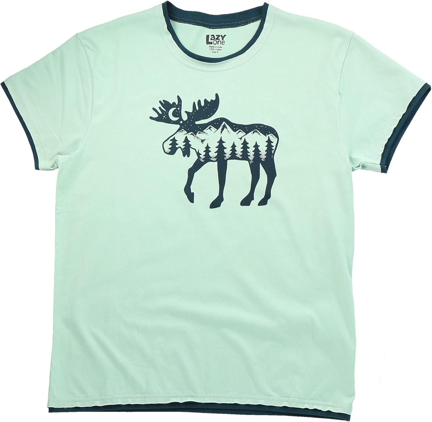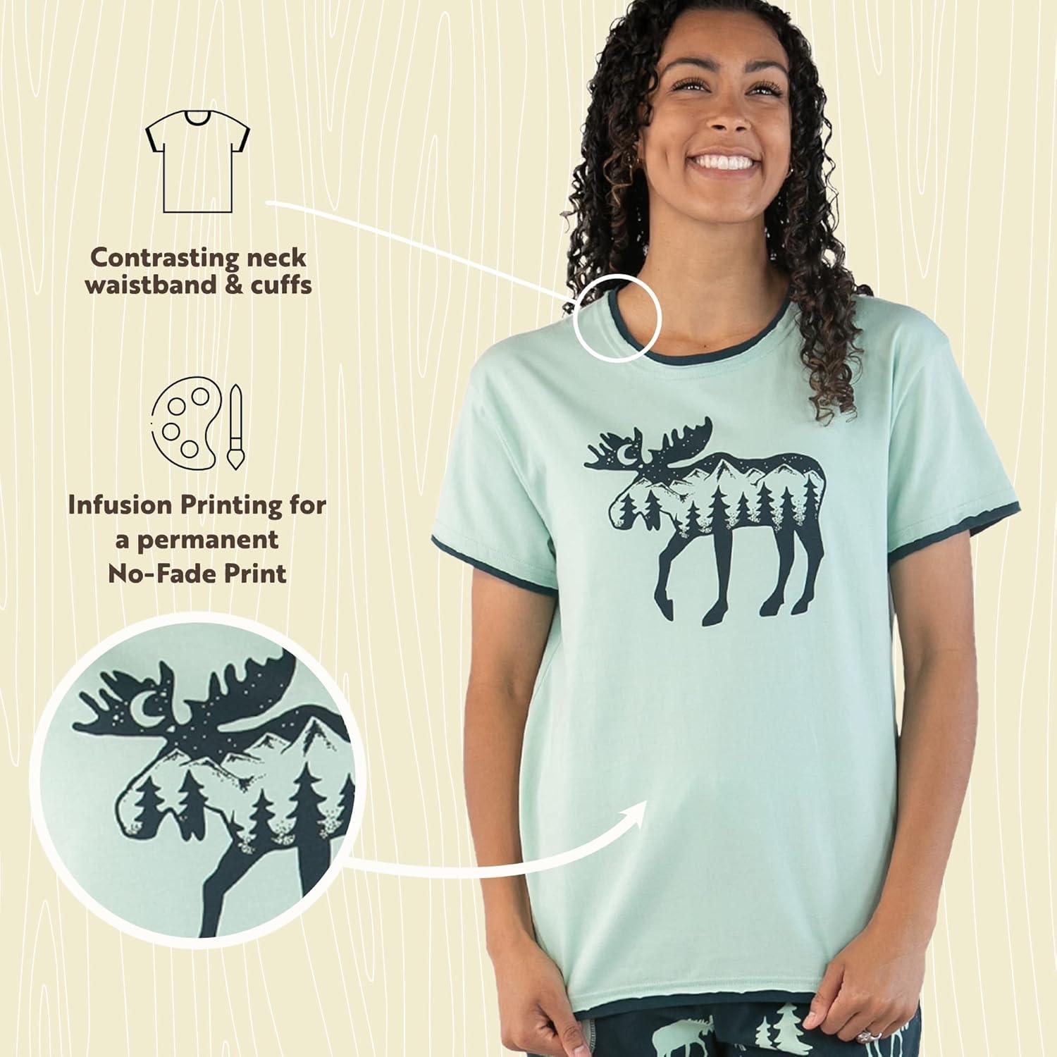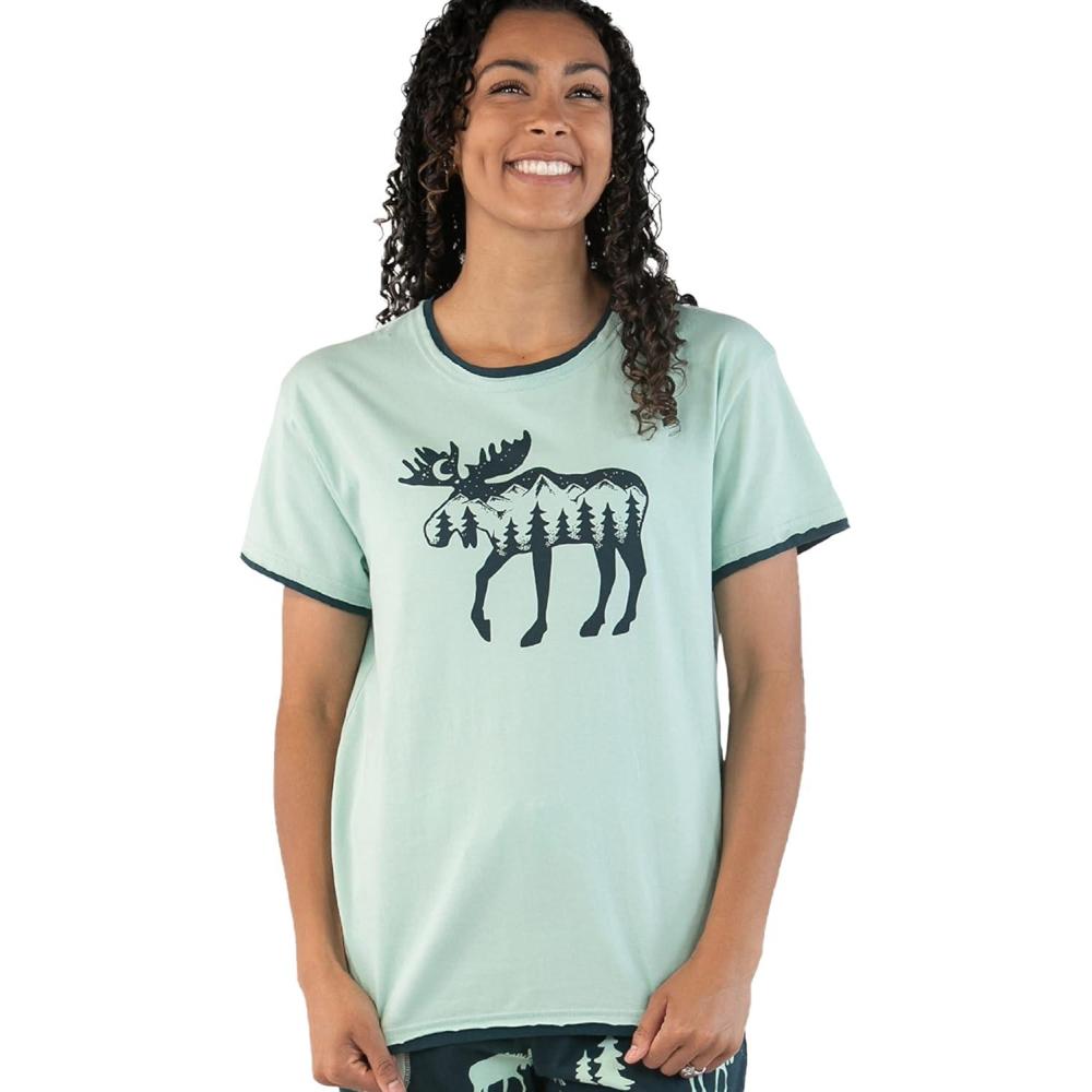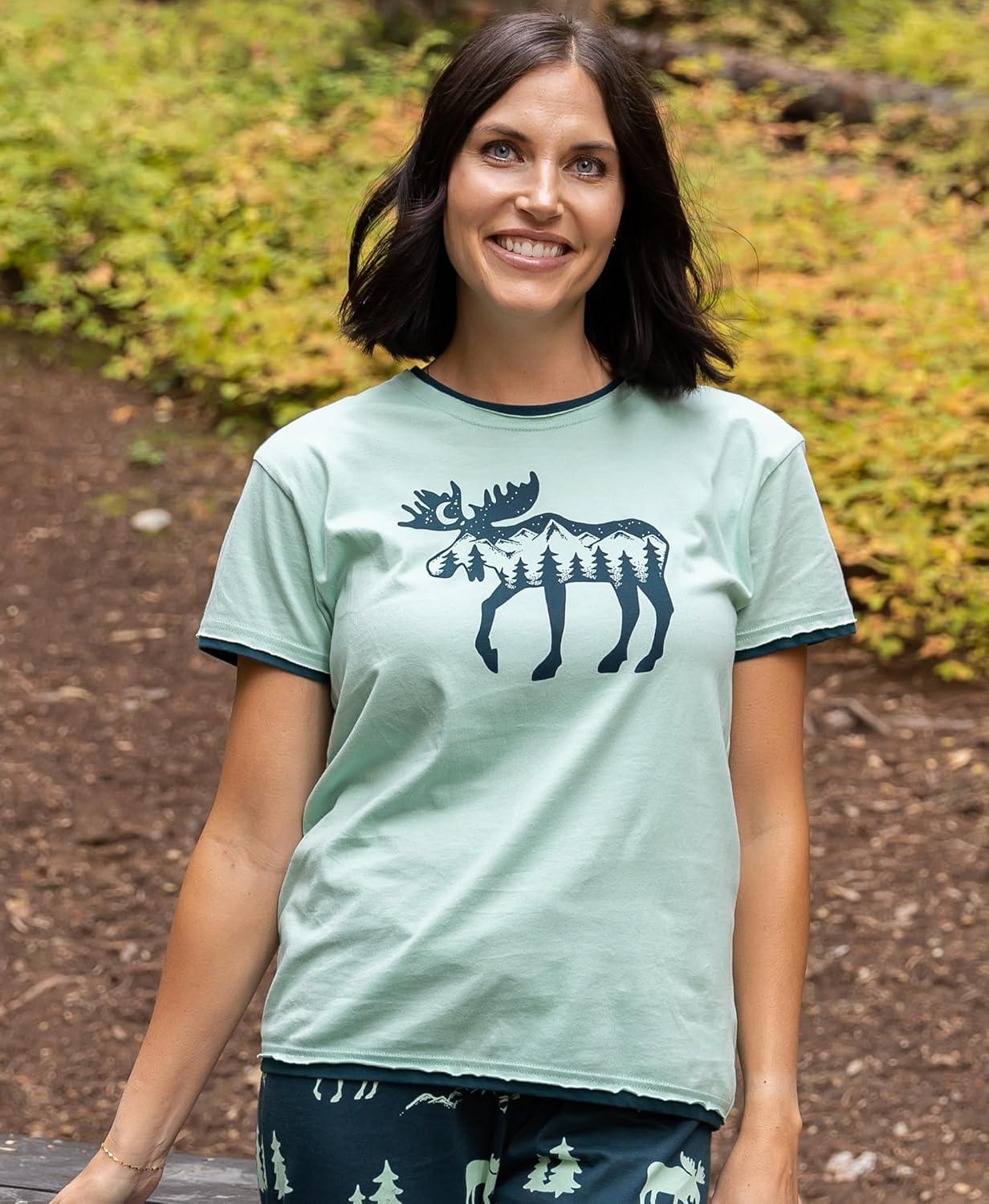 Lazy One Pajamas for Women, Cute Moose Pajama Pants and Top Separates(Mountain Moose Pajama Shirt)