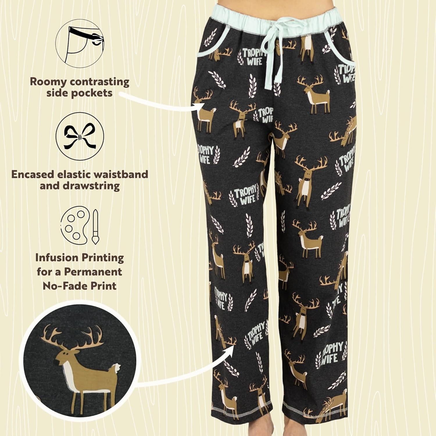 Lazy One Pajamas for Women, Cute Moose Pajama Pants and Top Separates(Trophy Wife Womens Pajama Pant Gray)