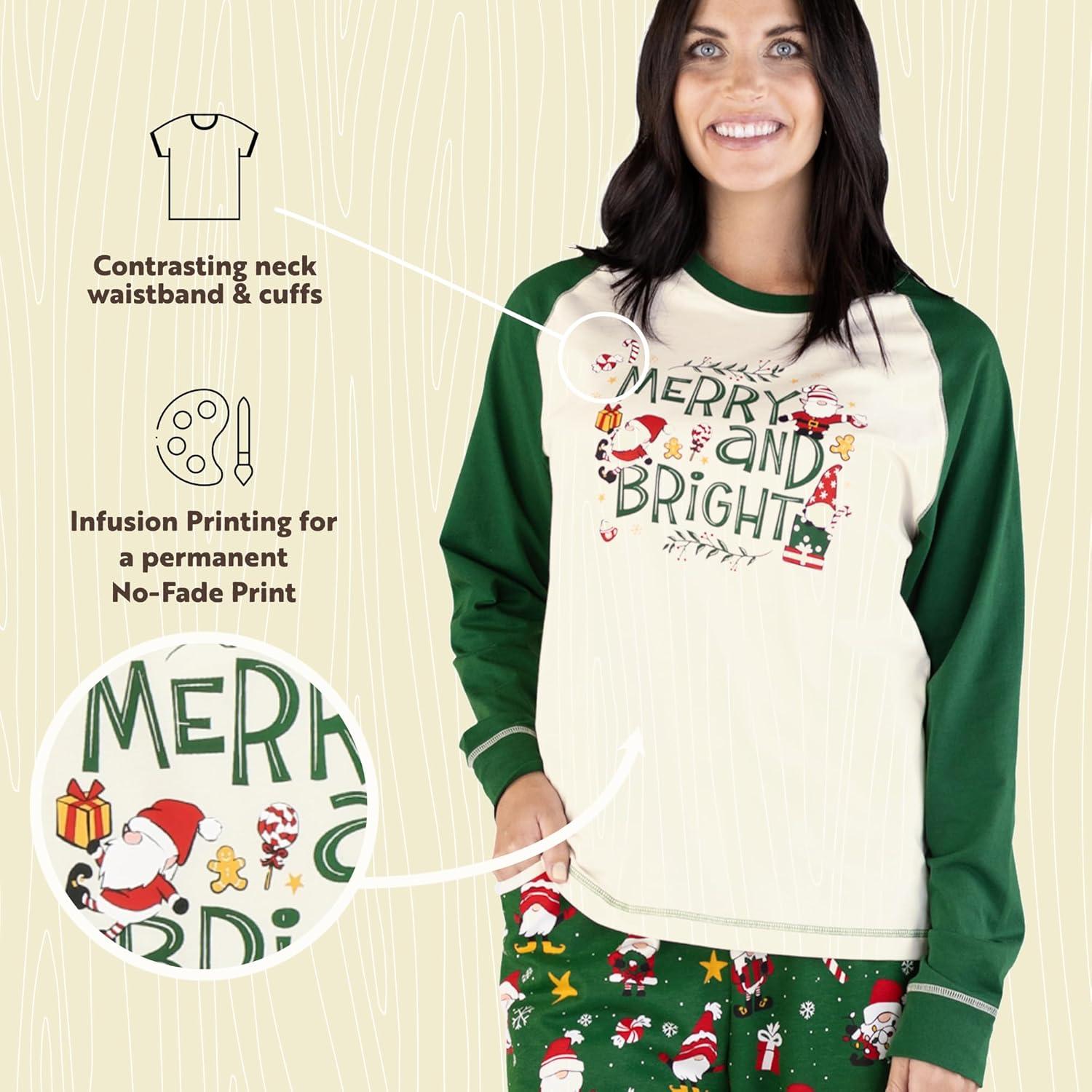 Lazy One Pajamas for Women, Cute Pajama Pants and Long Sleeve Top Separates(Christmas Gnome Womens Pajama Shirt)
