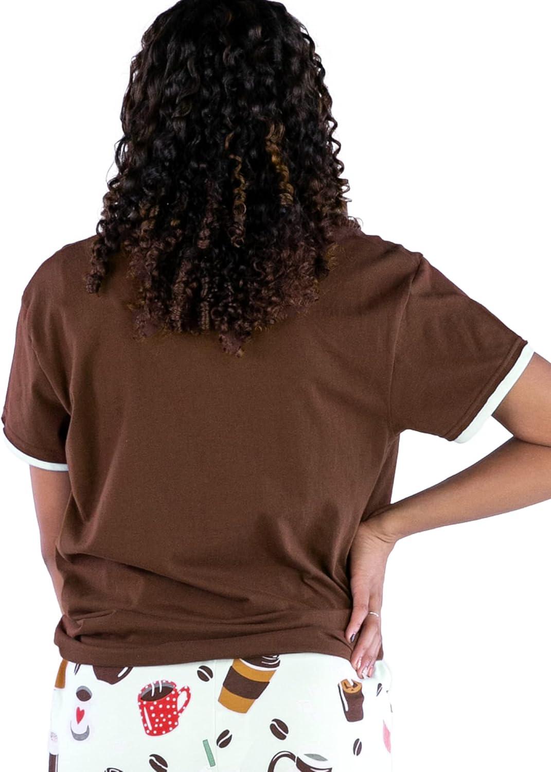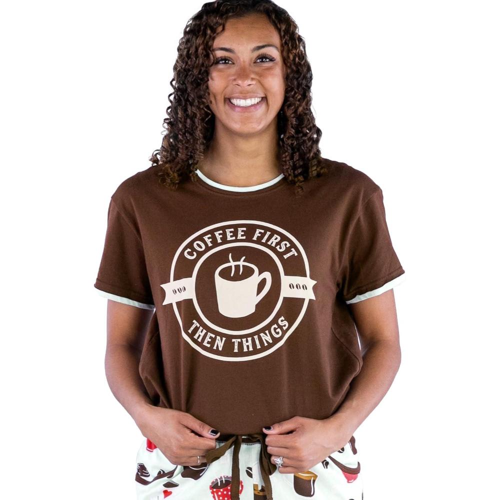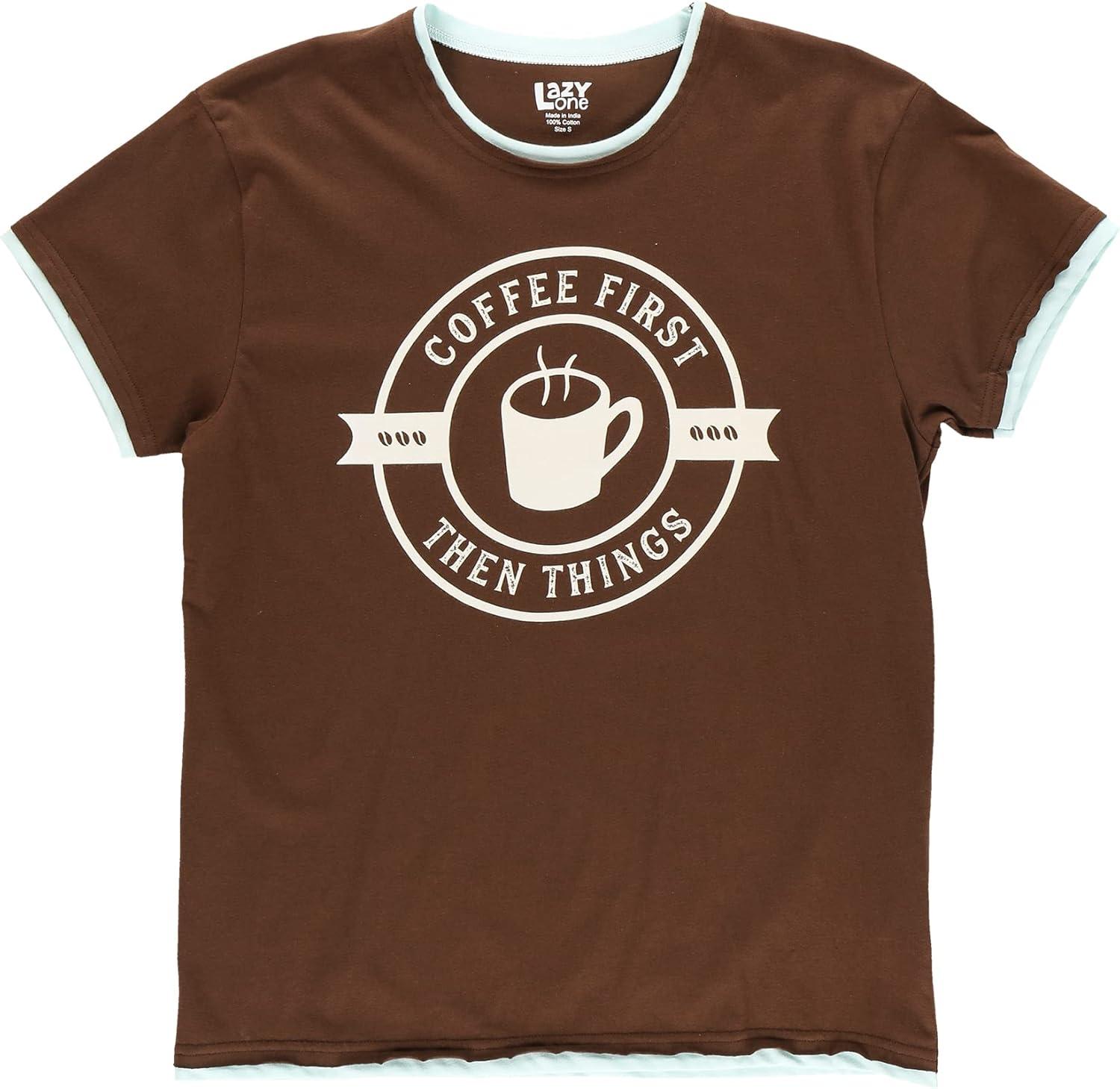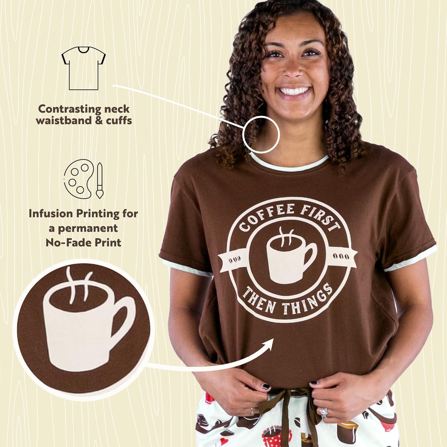 Lazy One Pajamas for Women, Cute Pajama Pants and Top Separates(Coffee First Womens Pajama Shirt)