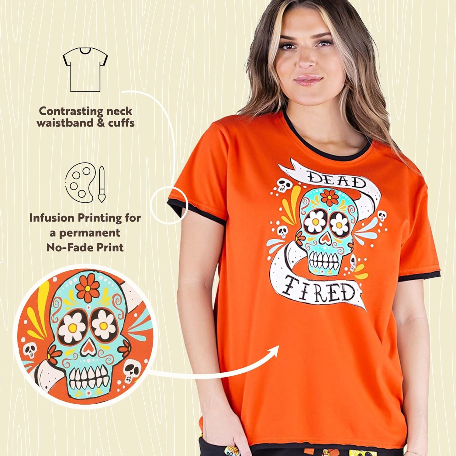 Lazy One Pajamas for Women, Cute Pajama Pants and Top Separates(Dead Tired Orange Womens Pajama Shirt)