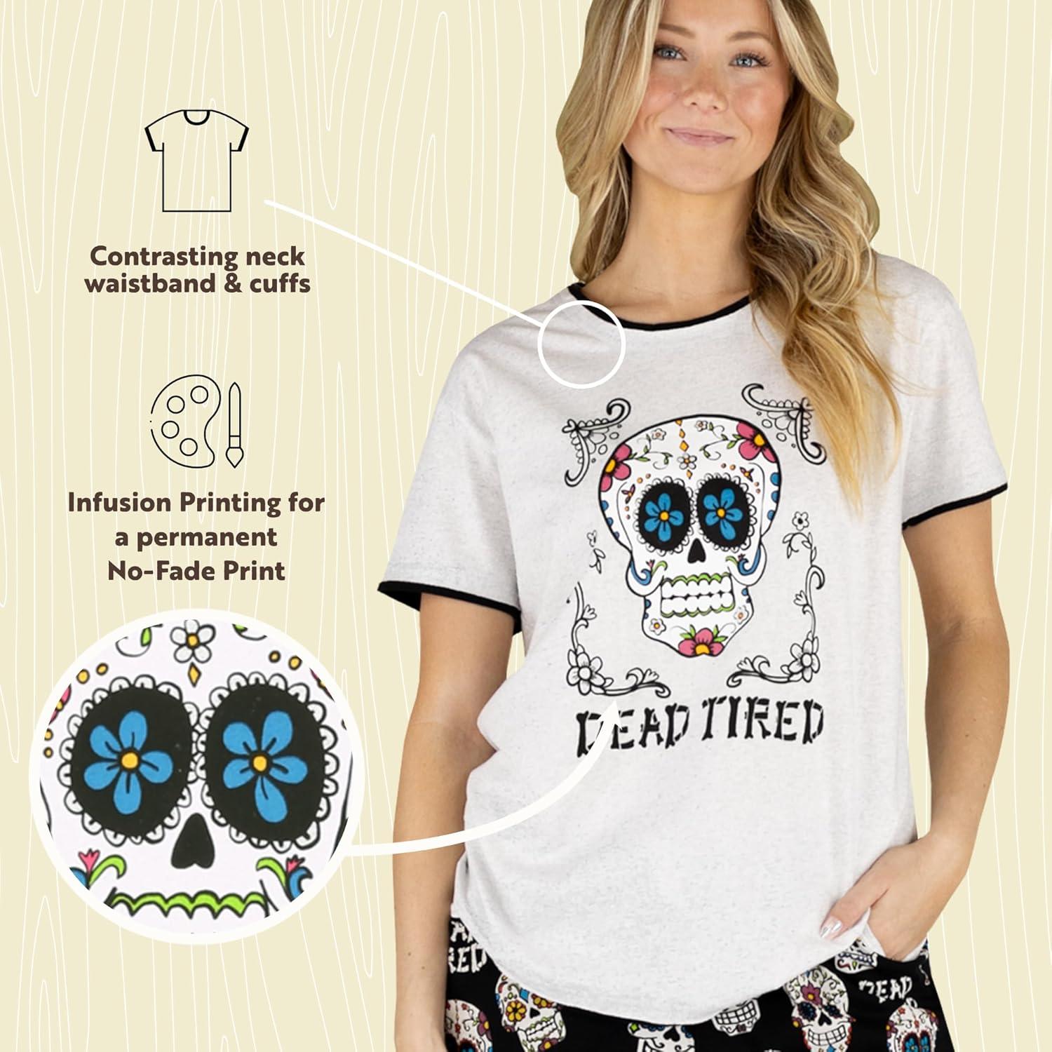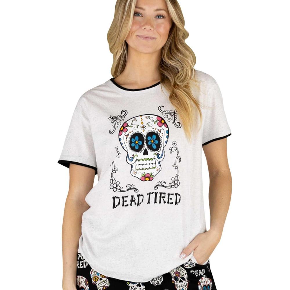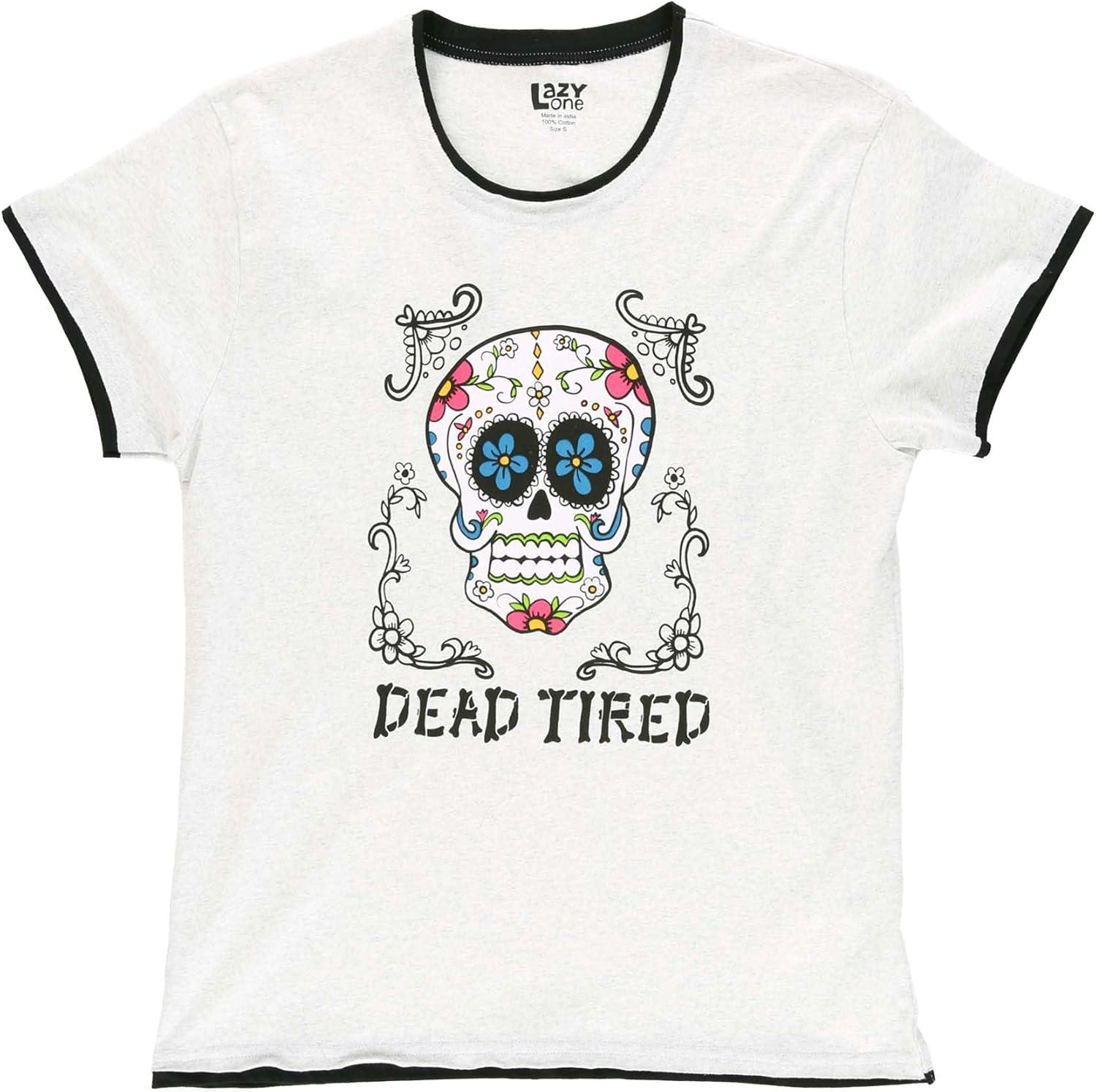 Lazy One Pajamas for Women, Cute Pajama Pants and Top Separates(Dead Tired Womens Pajama Shirt Gray)
