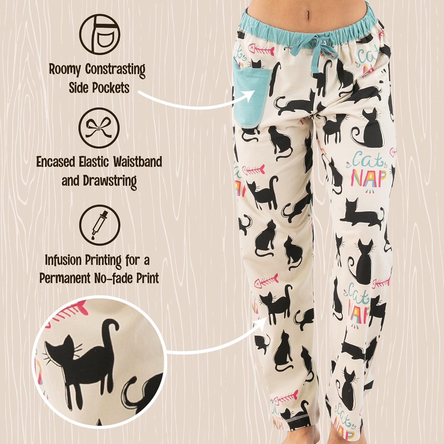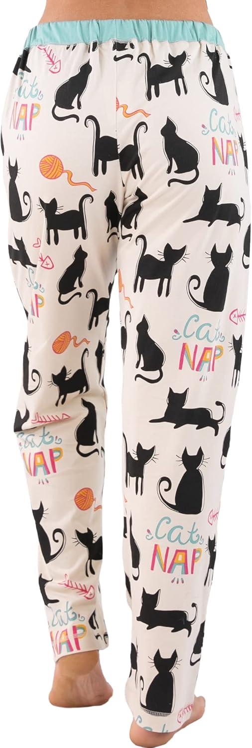 Lazy One Pajamas for Women, Cute Pajama Pants, Cat and Dog Pajamas for Women, Comfy Women's PJs(Cat Nap Blue Womens Pajama Pant)