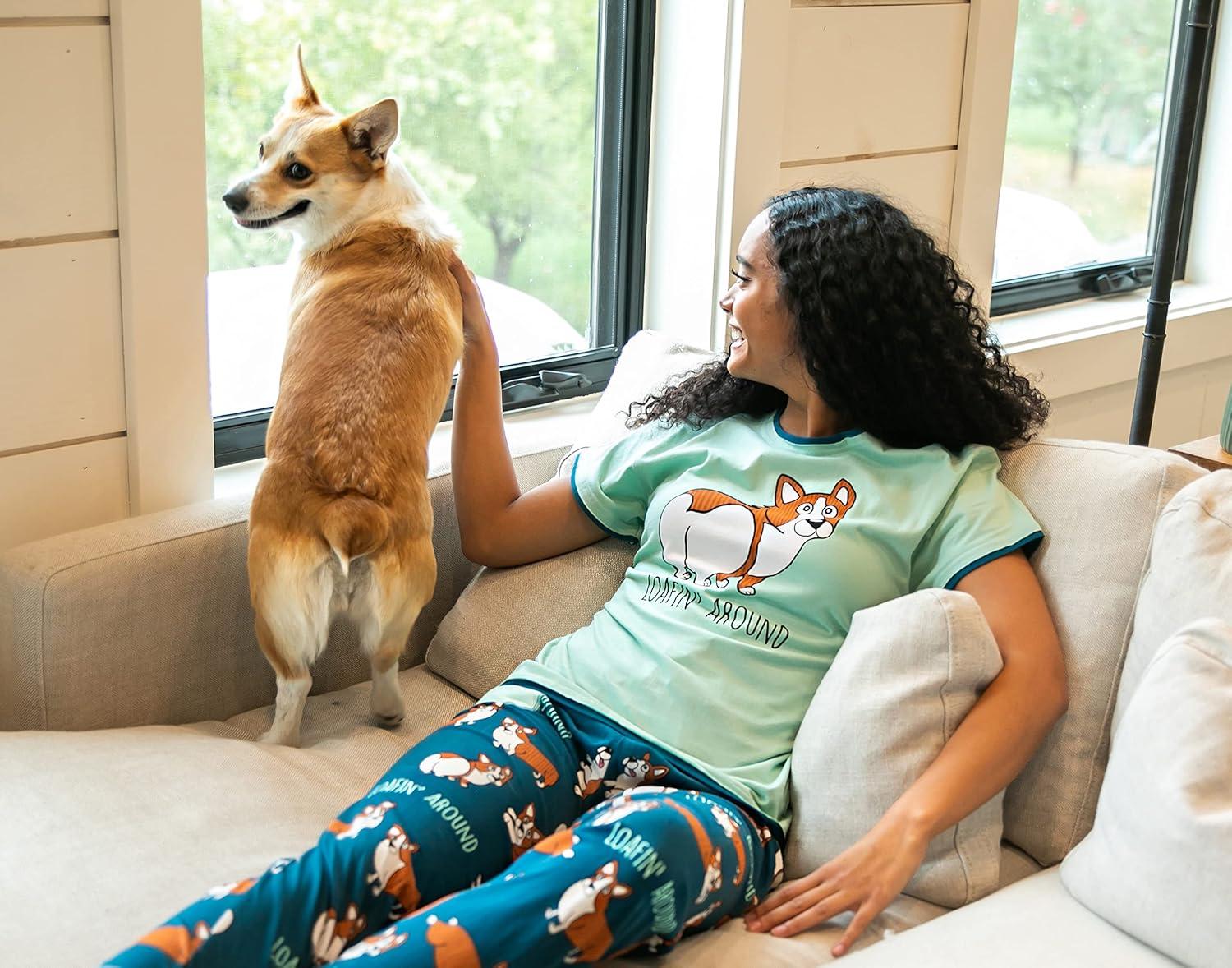 Lazy One Pajamas for Women, Cute Pajama Pants, Cat and Dog Pajamas for Women, Comfy Women’s PJs(Fetching Tired Womens Pajama Shirt)