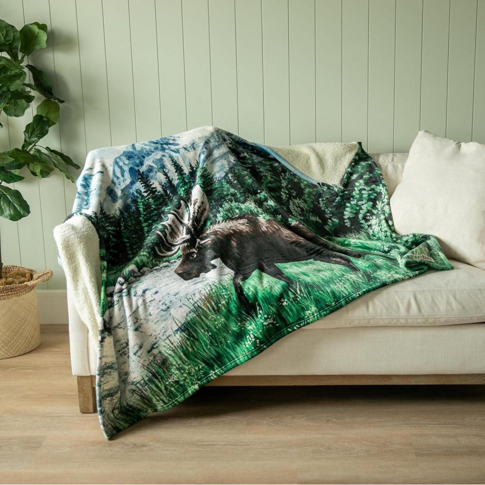 Wrap yourself in warmth, comfort, and artistry with this cozy throw blanket. Made from soft coral fleece and thick, fluffy sherpa, it’s designed to keep you comfortable through chilly nights and cozy mornings. Measuring 50″ x 65″, it’s big enough to add an extra layer of warmth to your bed yet lightweight enough to use as a sofa throw, chair blanket, or travel blanket on the go. What makes this blanket truly special are its exclusive designs. Each blanket features an original painting created by Lazy One’s in-house designer, then carefully transformed into fabric art. Choose from two stunning options: a rustic fall bear blanket or a striking moose blanket—both bringing the look and feel of a vintage throw blanket with modern comfort. The reversible design features soft coral fleece on one side and fluffy sherpa on the other, giving you two layers of cozy texture to snuggle with. Perfect for movie nights, sleepovers, or curling up by the fireplace, this art blanket blends function and style in one. LazyOne uses AZO-free dyes, so you can rest easy knowing this blanket is safe, nontoxic, and family-friendly. Whether you’re shopping for a cabin-inspired gift or a cozy addition to your own home, this bear or moose painting blanket is sure to become a favorite all year long.