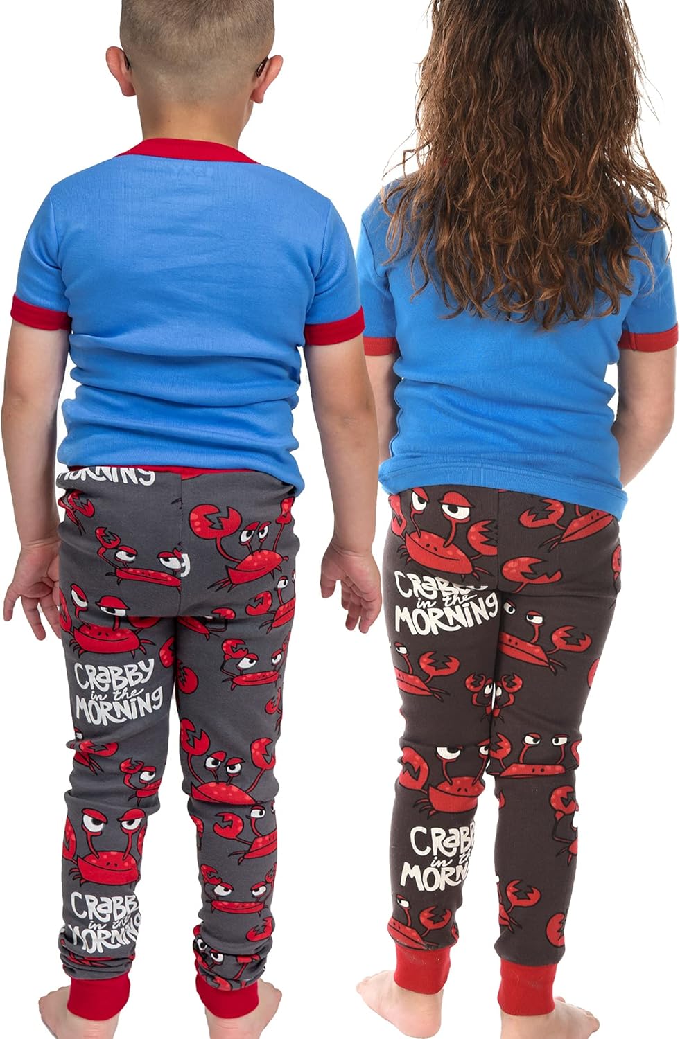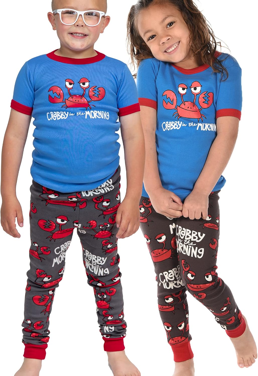 Lazy One Short-Sleeve Pajamas Sets for Girls and Boys, Kids' Soft, Animal PJs, Lake Pajamas(Crabby in the Morning Pajama Sets)