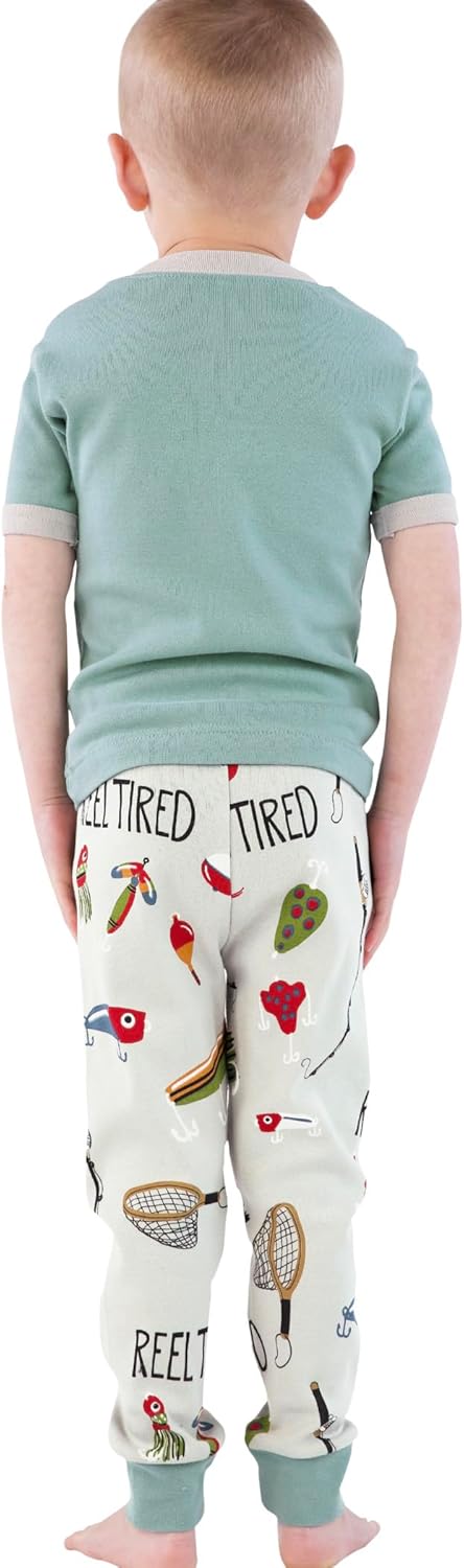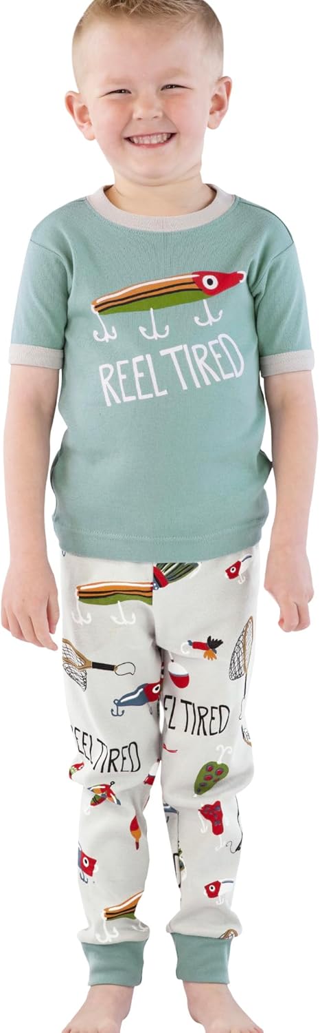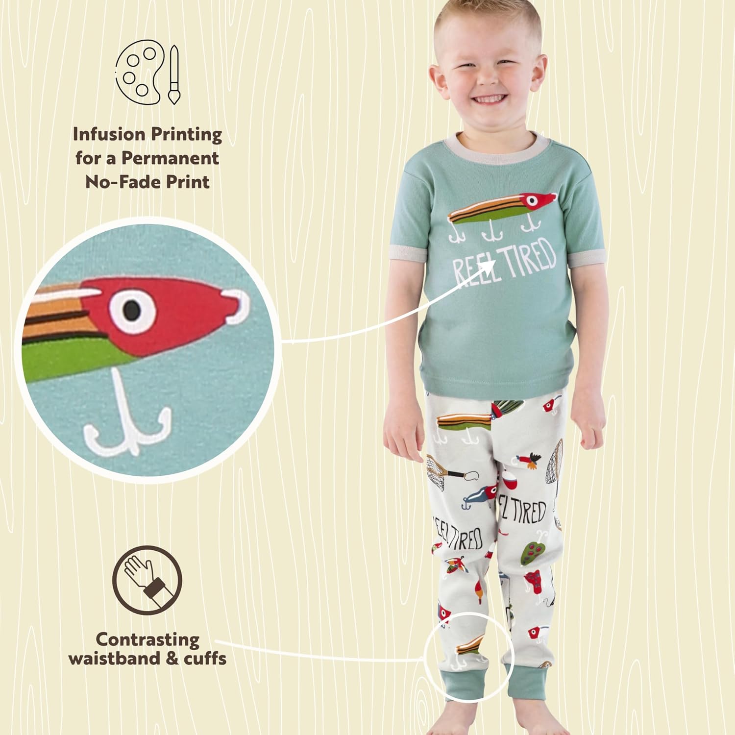 Lazy One Short-Sleeve Pajamas Sets for Girls and Boys, Kids' Soft, Animal PJs, Lake Pajamas(Reel Tired Pajama Sets)