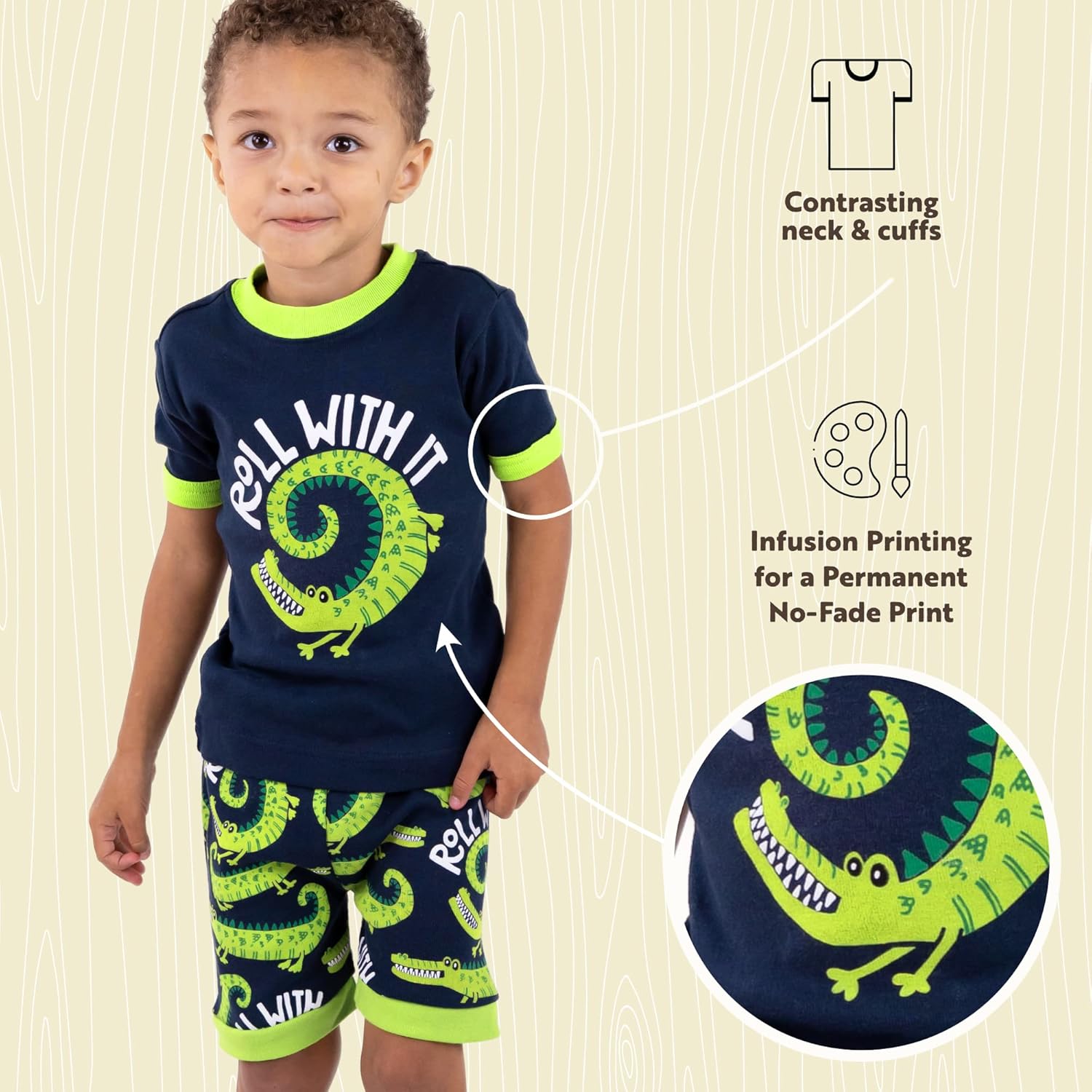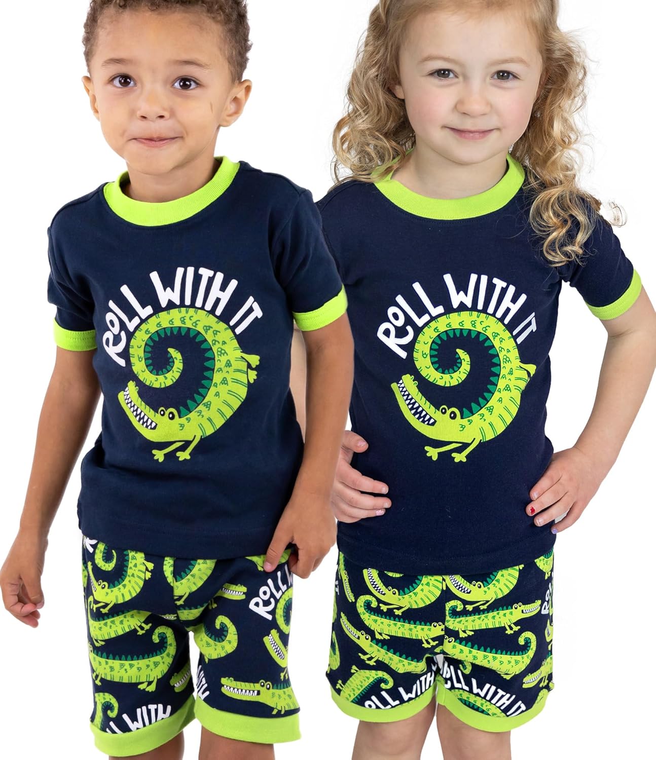 Lazy One Short-Sleeved Summer Pajama Set for Girls and Boys, Kid Pajama Set(Roll With It)