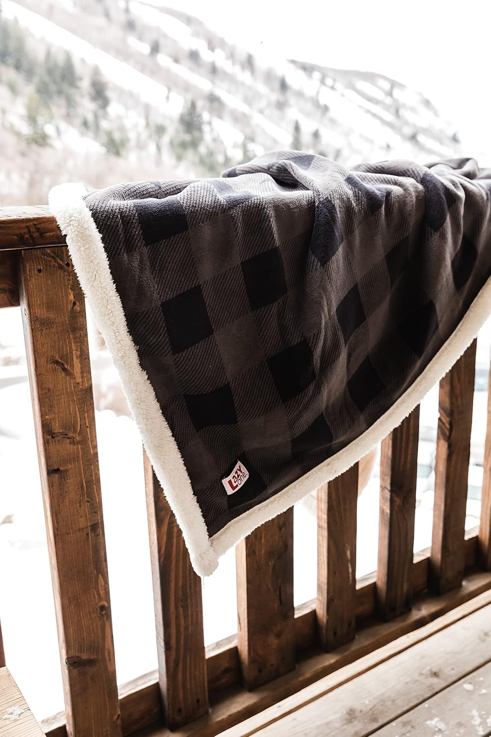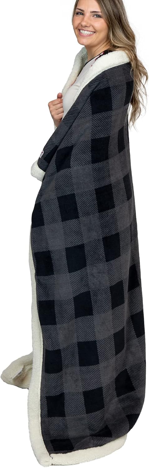 Lazy One Soft Polyester Sherpa Throw Blanket, Plaid and Animal Designs, One Size (Cabin Moose)(Grey Buffalo Check Fuzzy Blanket)