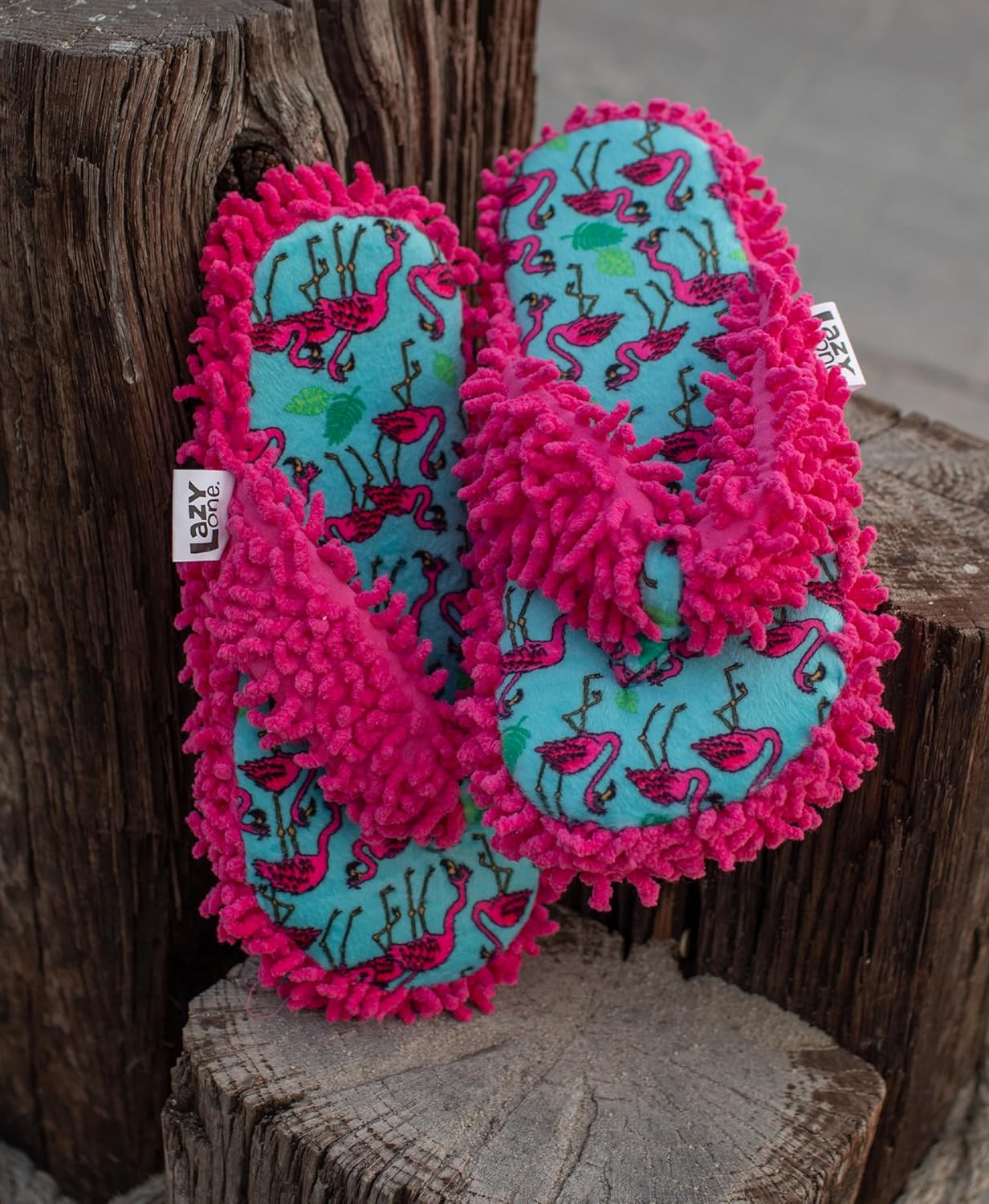 Lazy One Spa Flip-Flop Slippers for Women, Girls' Fuzzy House Slippers(Flamingo Spa Slipper)