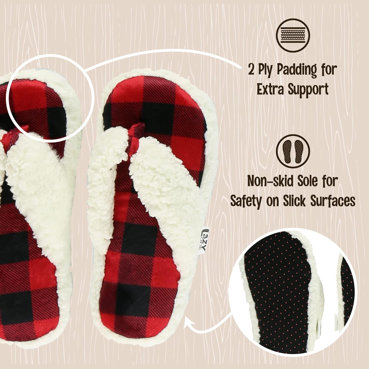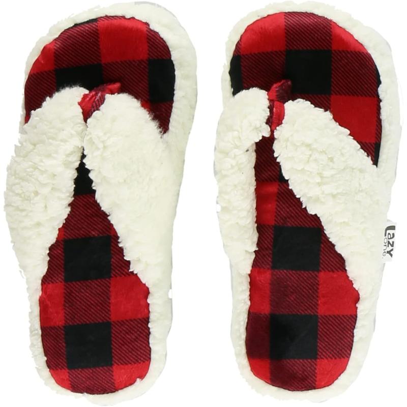 Lazy One Spa Flip-Flop Slippers for Women, Girls’ Fuzzy House Slippers(Red Plaid Spa Slipper)