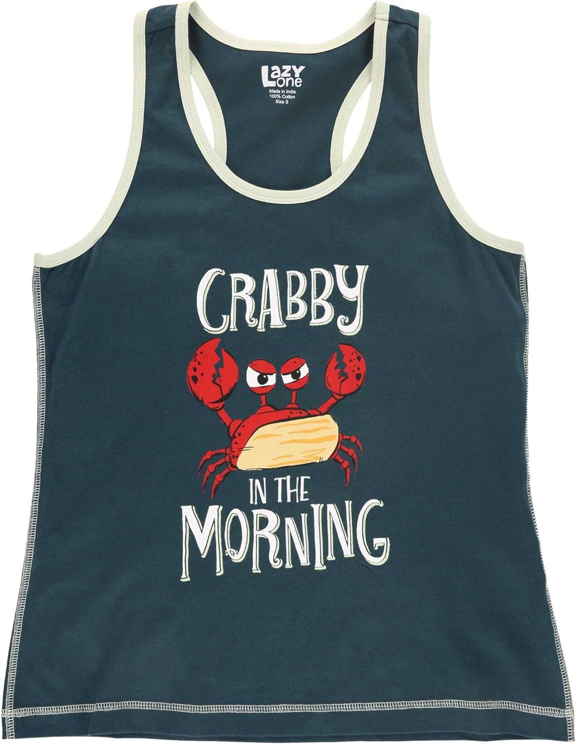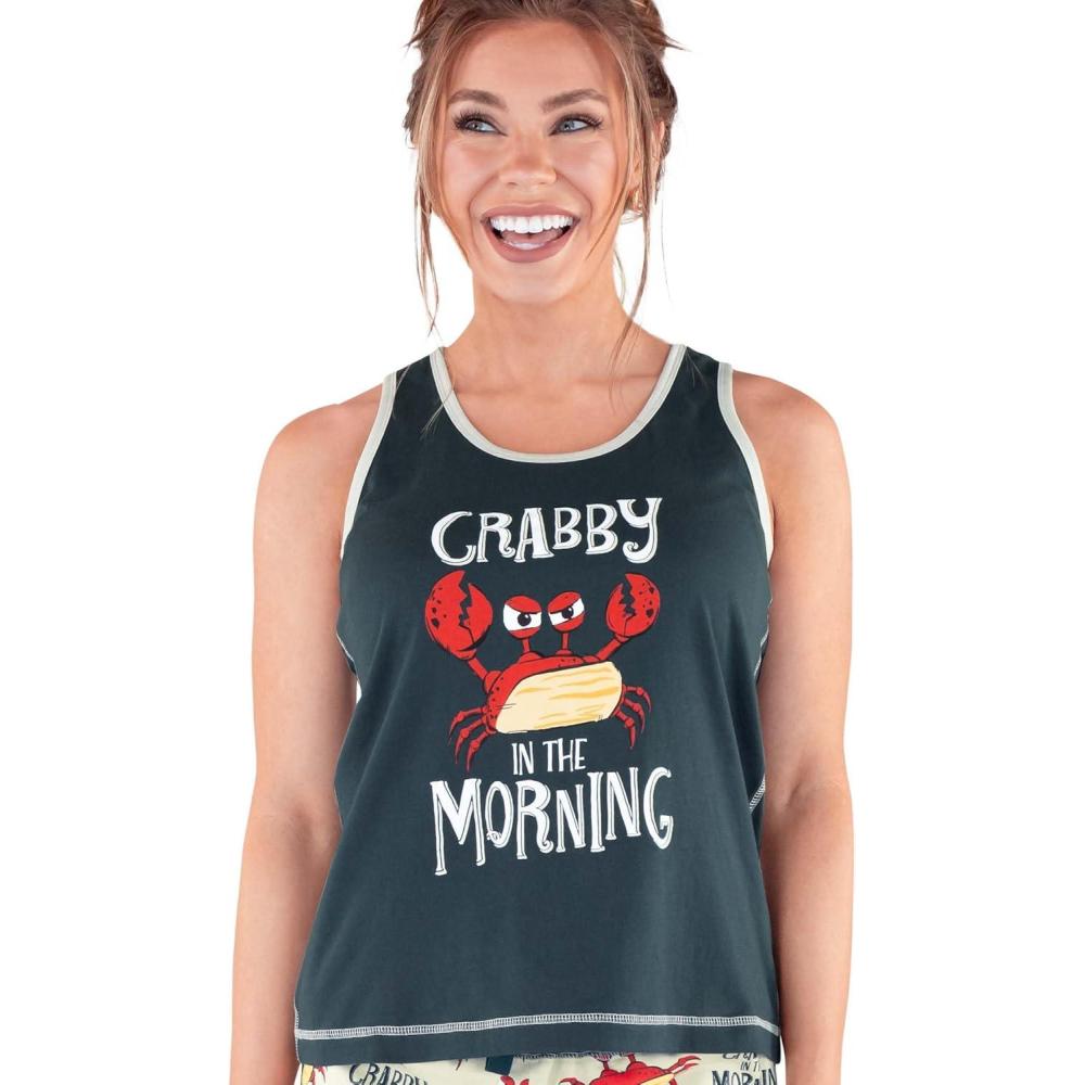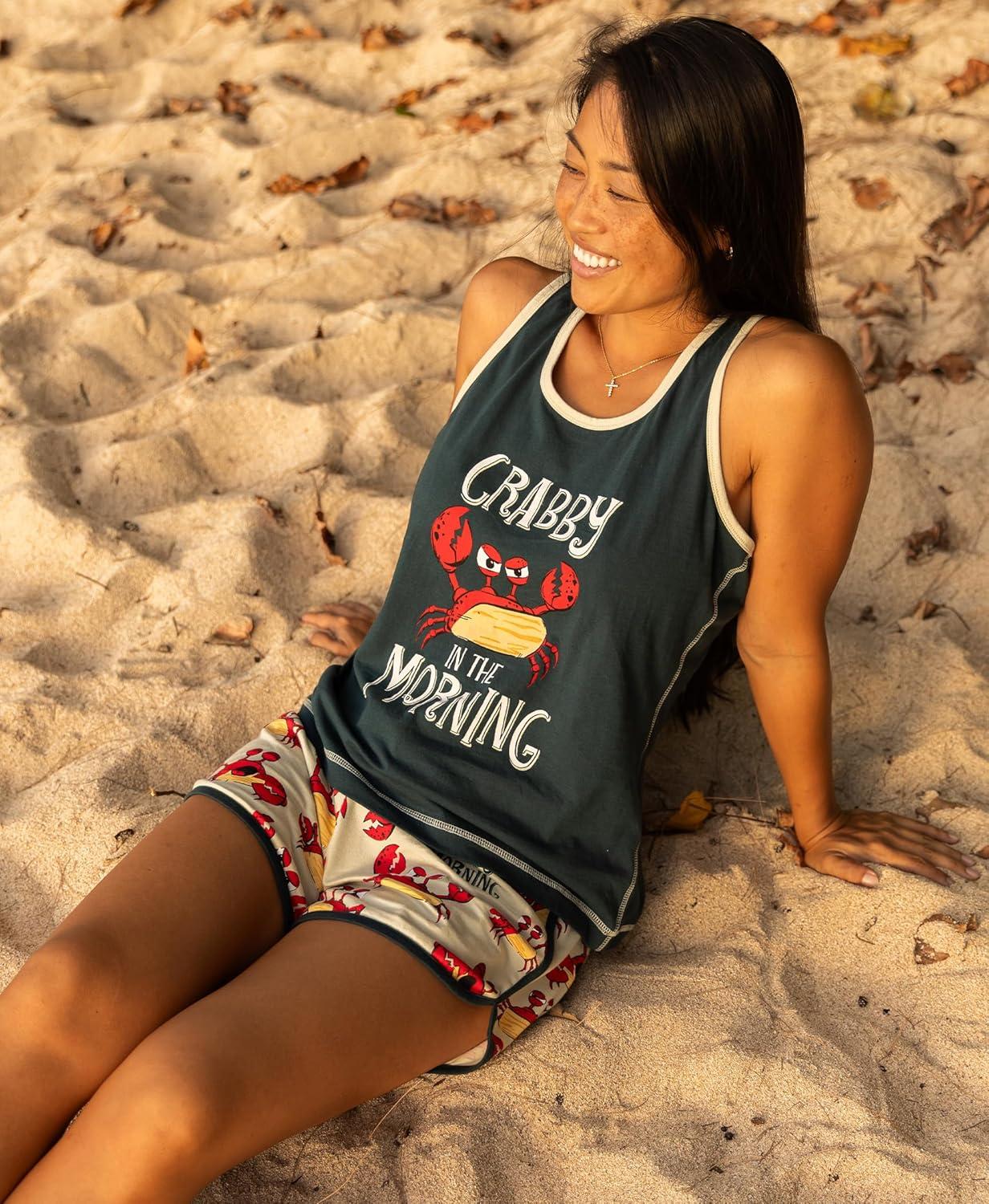Lazy One Tank and Shorts Pajama Separates, Cute Summer Pajamas for Women, Mix-and-Match, Vintage Styling, Separates(Crabby in the Morning Tank Top)