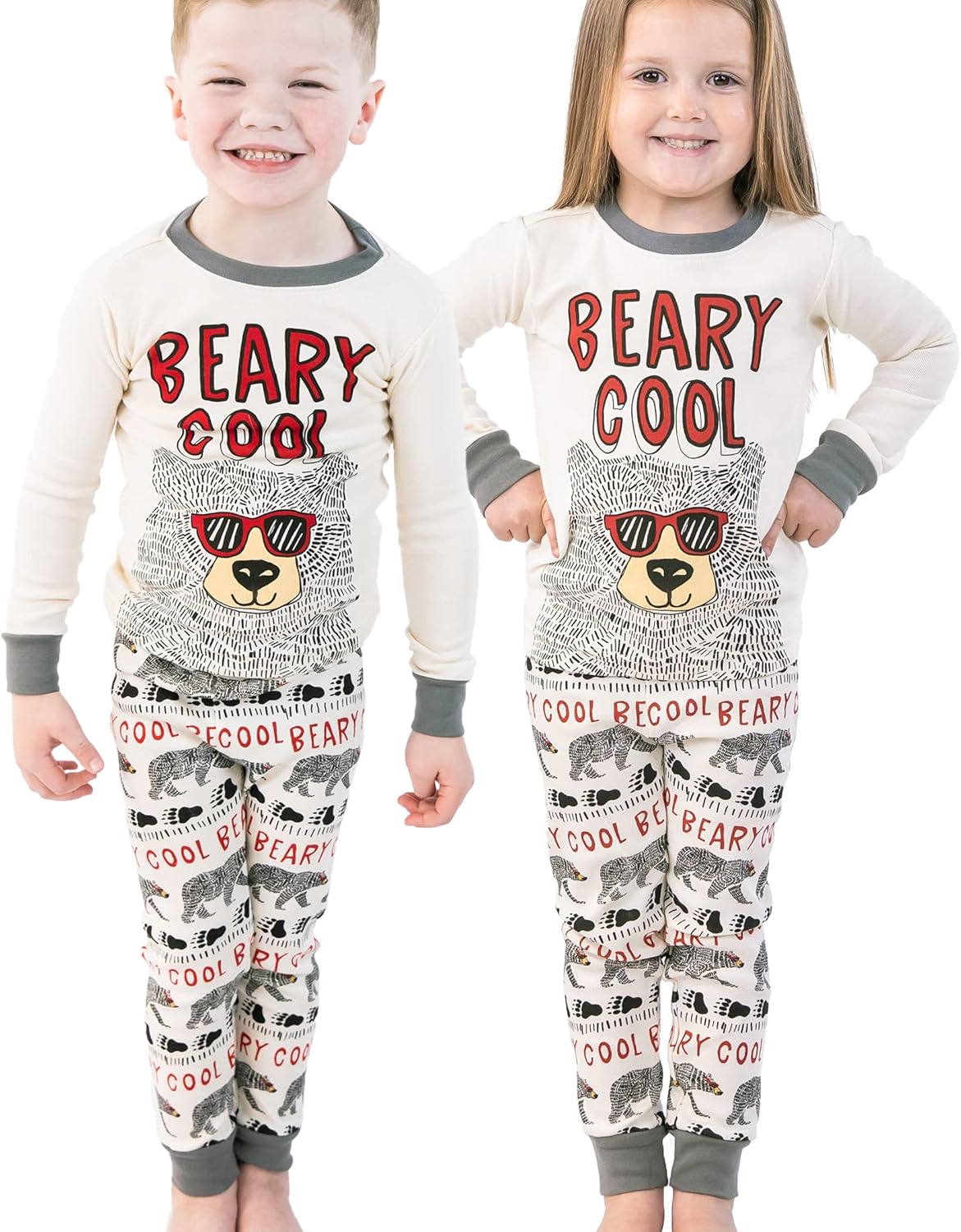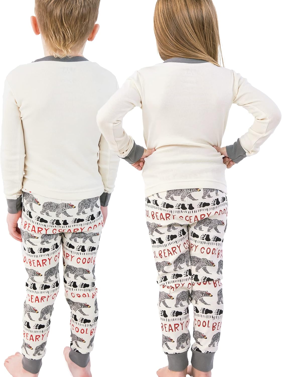 Lazy One Warm Long-Sleeve PJ Sets for Girls and Boys, Cozy, Comfy, Funny Kids’ Pajama Sets, Animal, Bear & Moose(Beary Cool Pajama Sets)