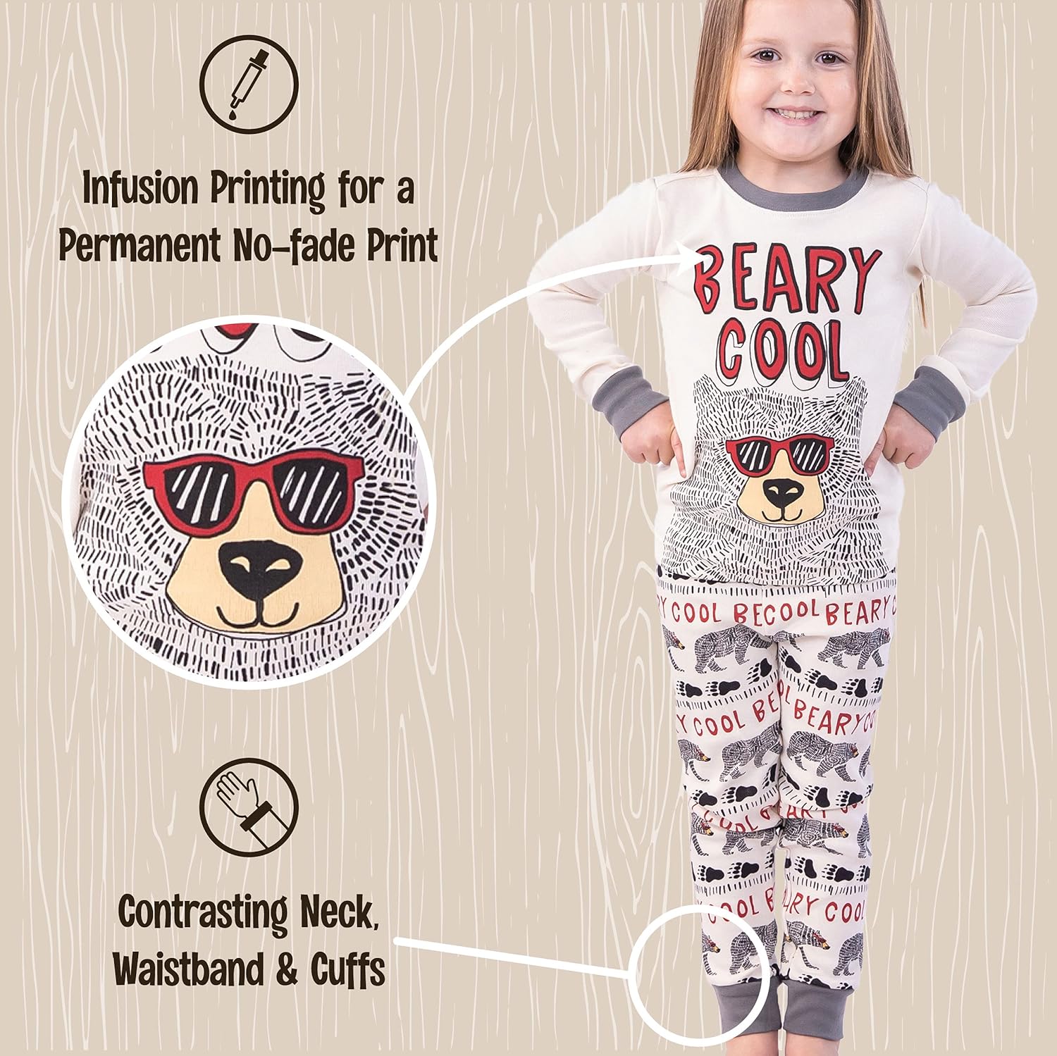Lazy One Warm Long-Sleeve PJ Sets for Girls and Boys, Cozy, Comfy, Funny Kids' Pajama Sets, Animal, Bear & Moose(Beary Cool Pajama Sets)