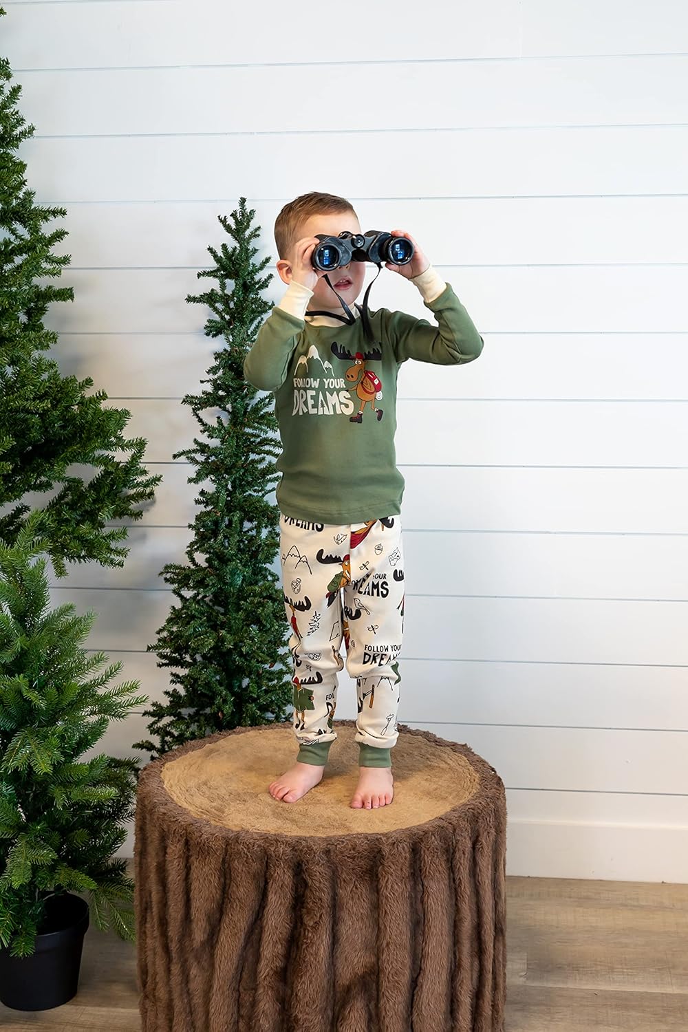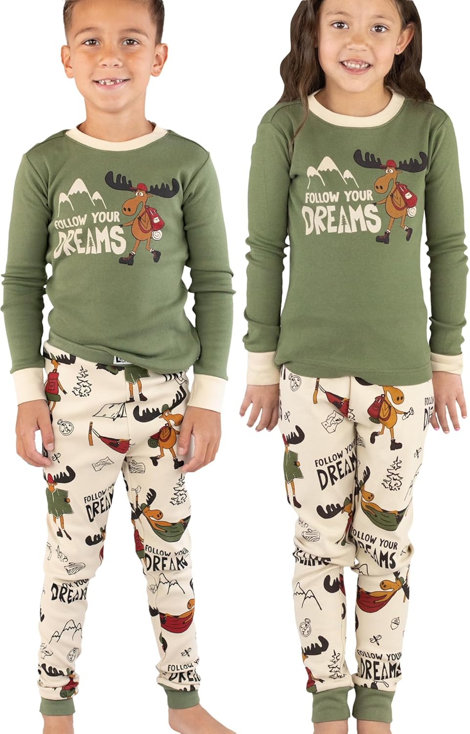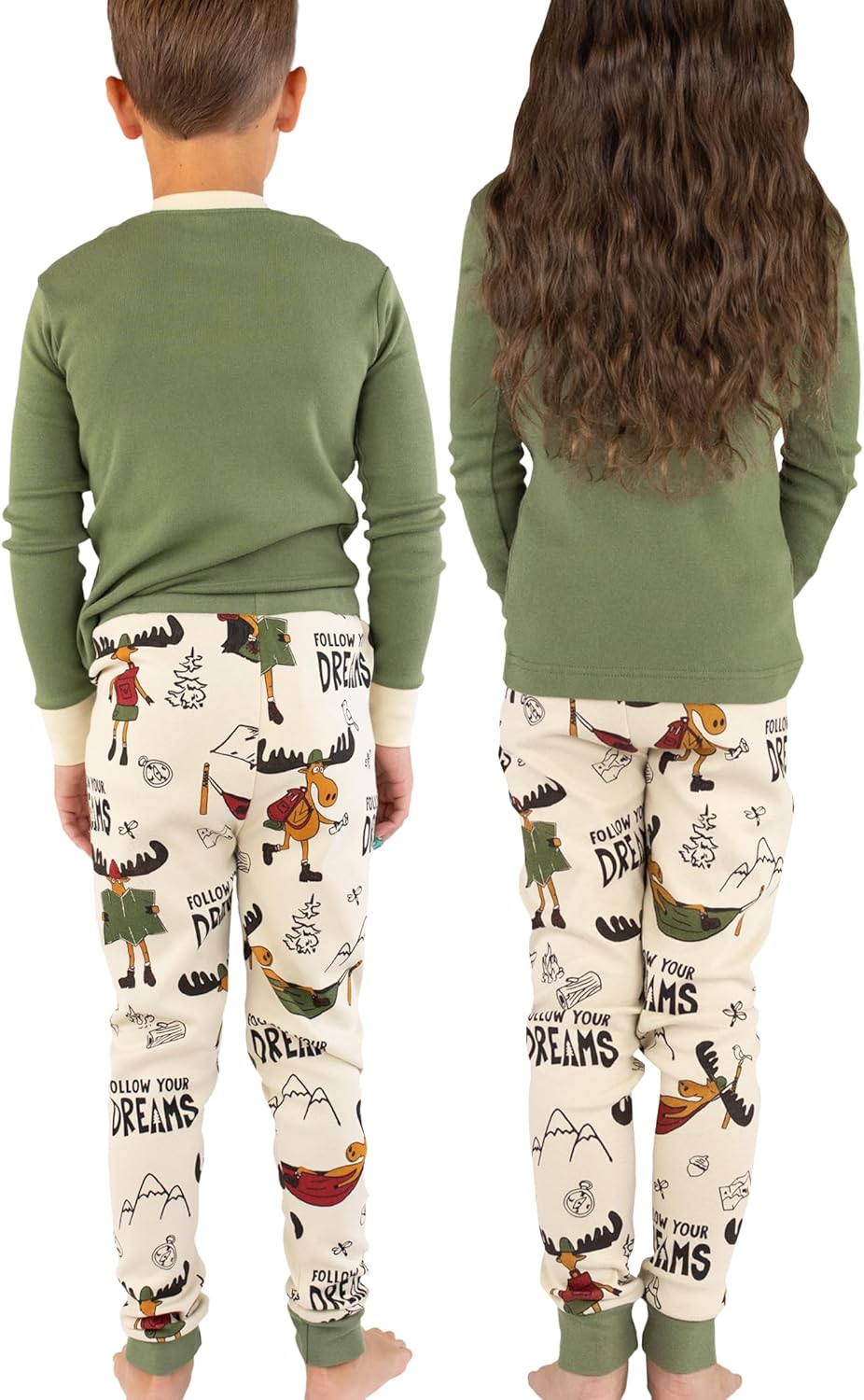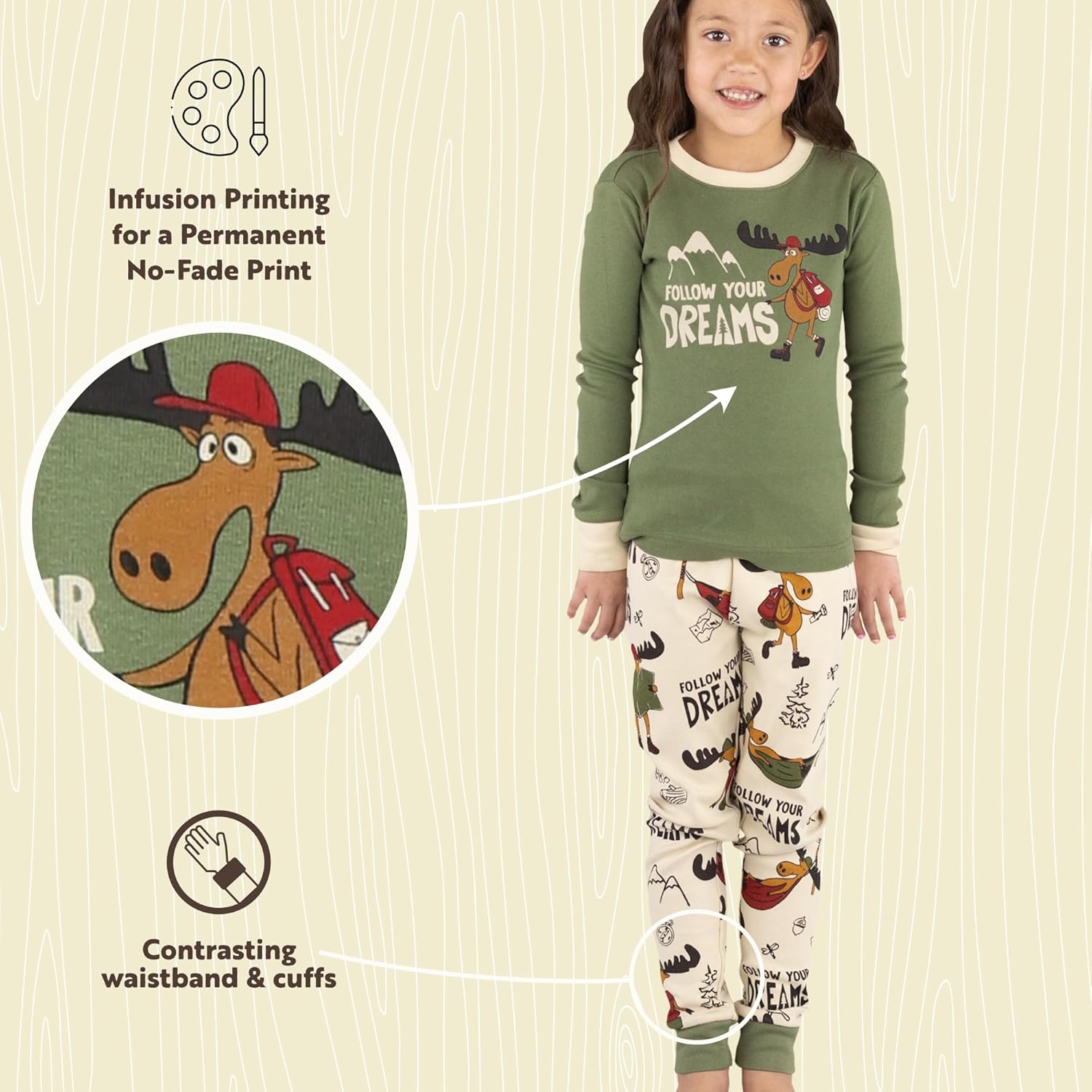 Lazy One Warm Long-Sleeve PJ Sets for Girls and Boys, Cozy, Comfy, Funny Kids’ Pajama Sets, Animal, Bear & Moose(Follow Your Dreams Pajama Sets)