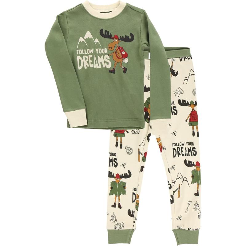 Lazy One Warm Long-Sleeve PJ Sets for Girls and Boys, Cozy, Comfy, Funny Kids' Pajama Sets, Animal, Bear & Moose(Follow Your Dreams Pajama Sets)