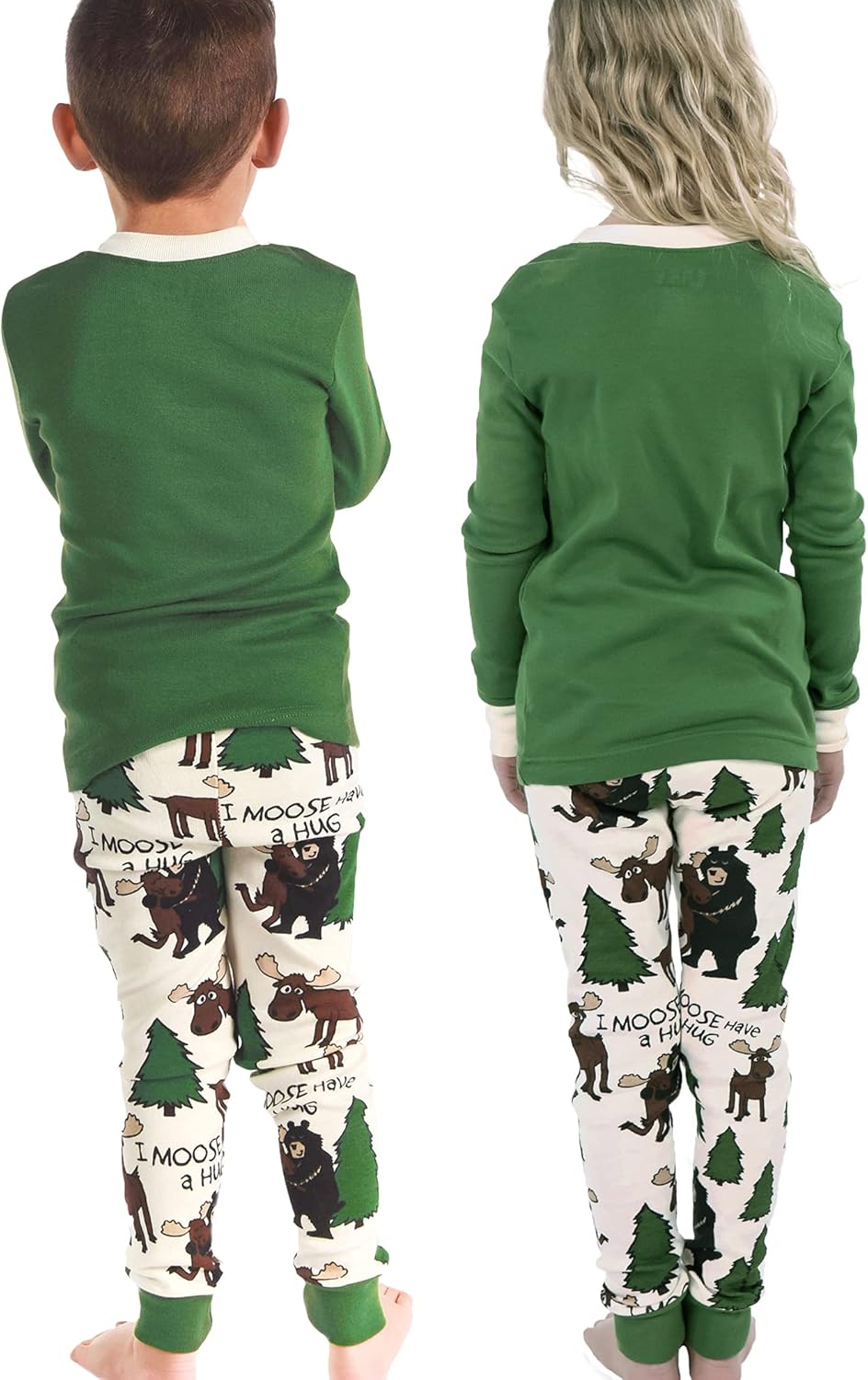 Lazy One Warm LongSleeve PJ Sets for Girls and Boys Cozy Comfy Funny Kids Pajama Sets Animal Bear ampamp MooseI Moose Have a Hug Green Pajama Sets