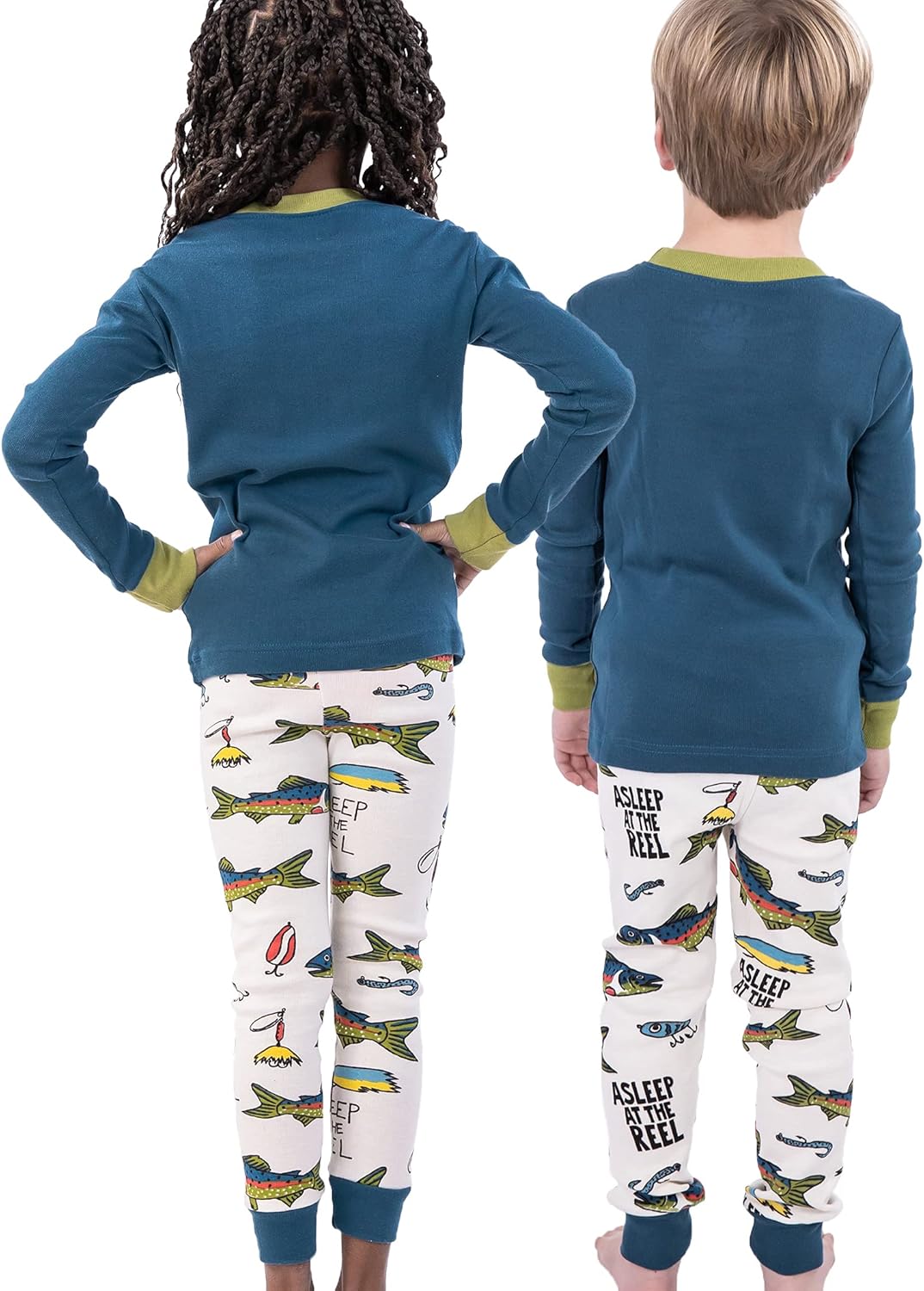 Lazy One Warm Long-Sleeve PJ Sets for Girls and Boys, Funny Animal Kids' Pajama Sets, Cozy, Comfy(Asleep at the Reel Pajama Sets)