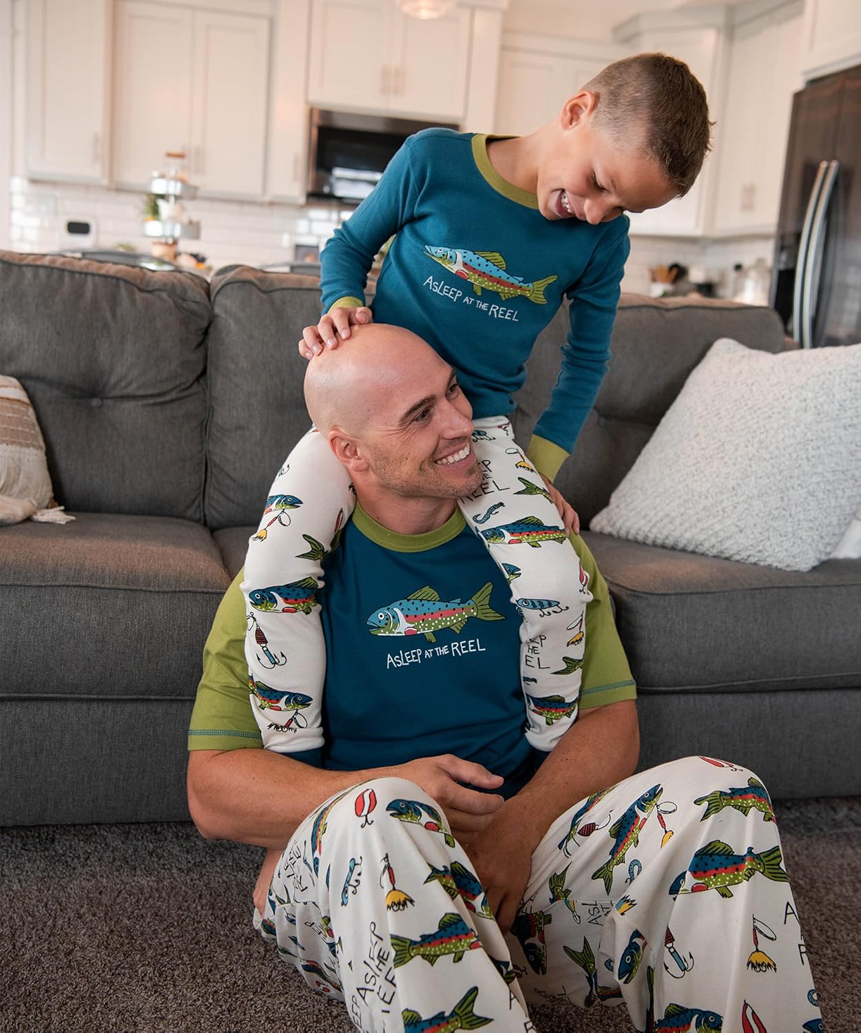 Lazy One Warm Long-Sleeve PJ Sets for Girls and Boys, Funny Animal Kids’ Pajama Sets, Cozy, Comfy(Asleep at the Reel Pajama Sets)