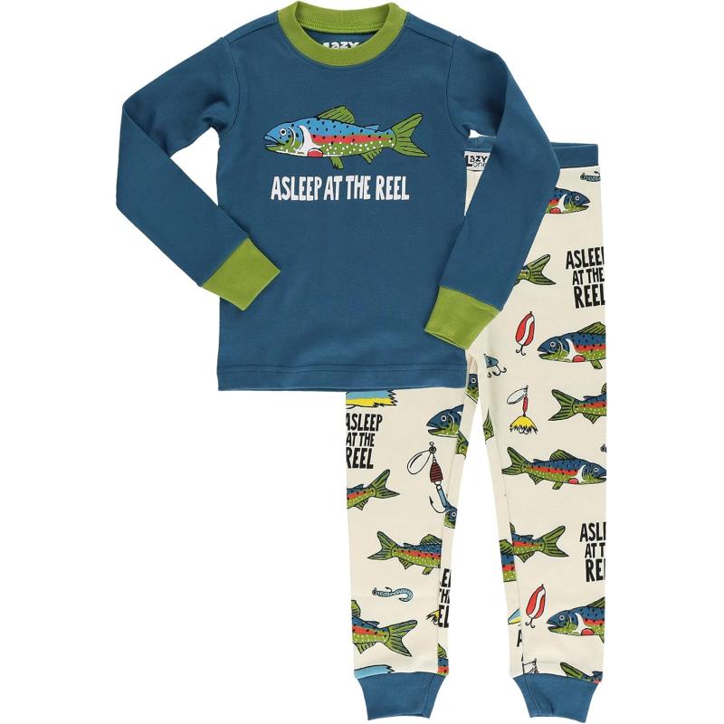 Lazy One Warm LongSleeve PJ Sets for Girls and Boys Funny Animal Kids Pajama Sets Cozy ComfyAsleep at the Reel Pajama Sets