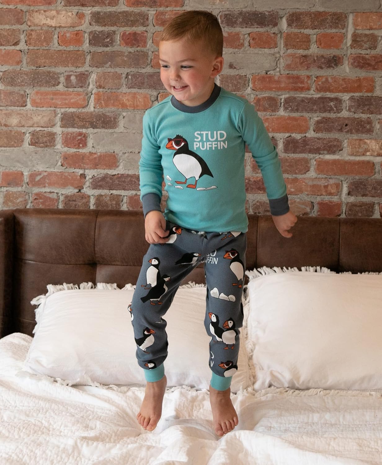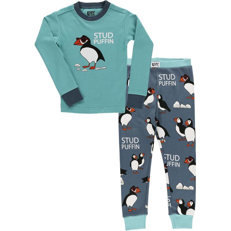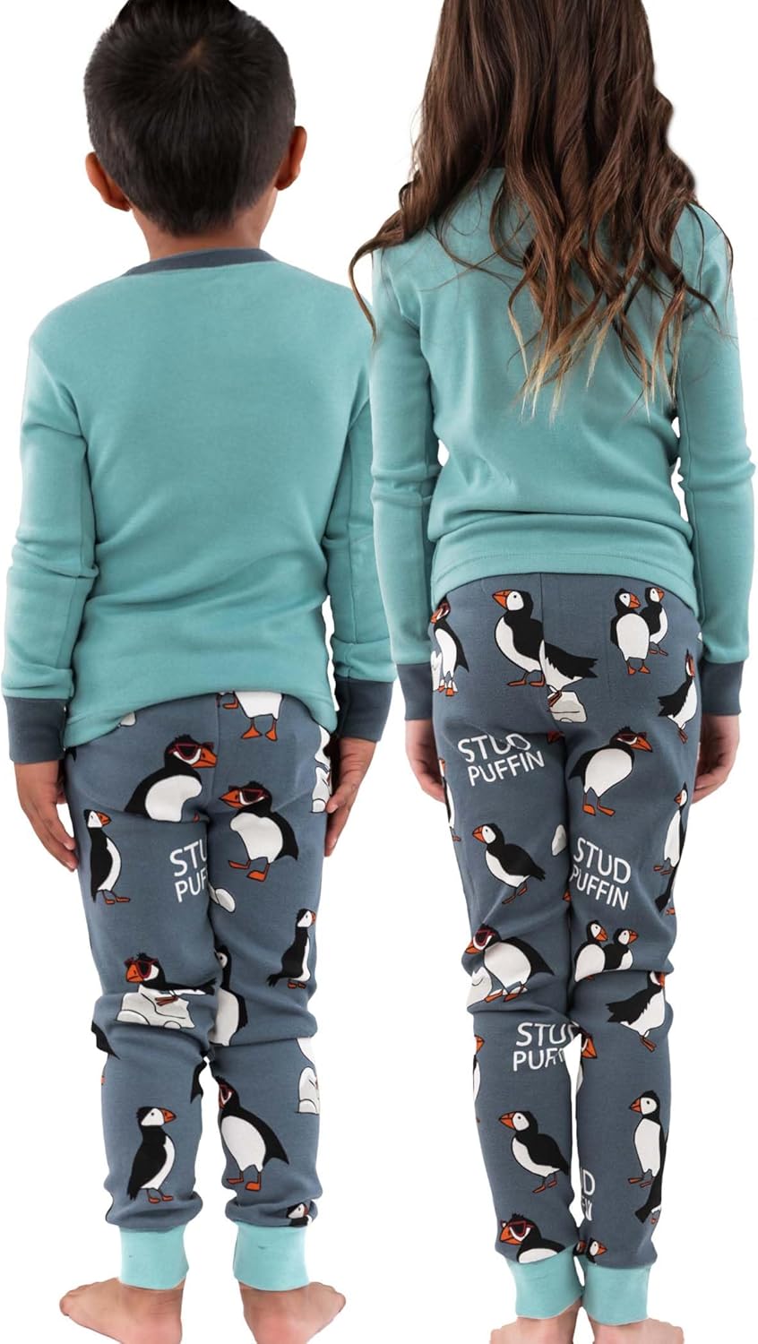 Lazy One Warm Long-Sleeve PJ Sets for Girls and Boys, Funny Animal Kids’ Pajama Sets, Cozy, Comfy(Stud Puffin Blue Pajama Sets)
