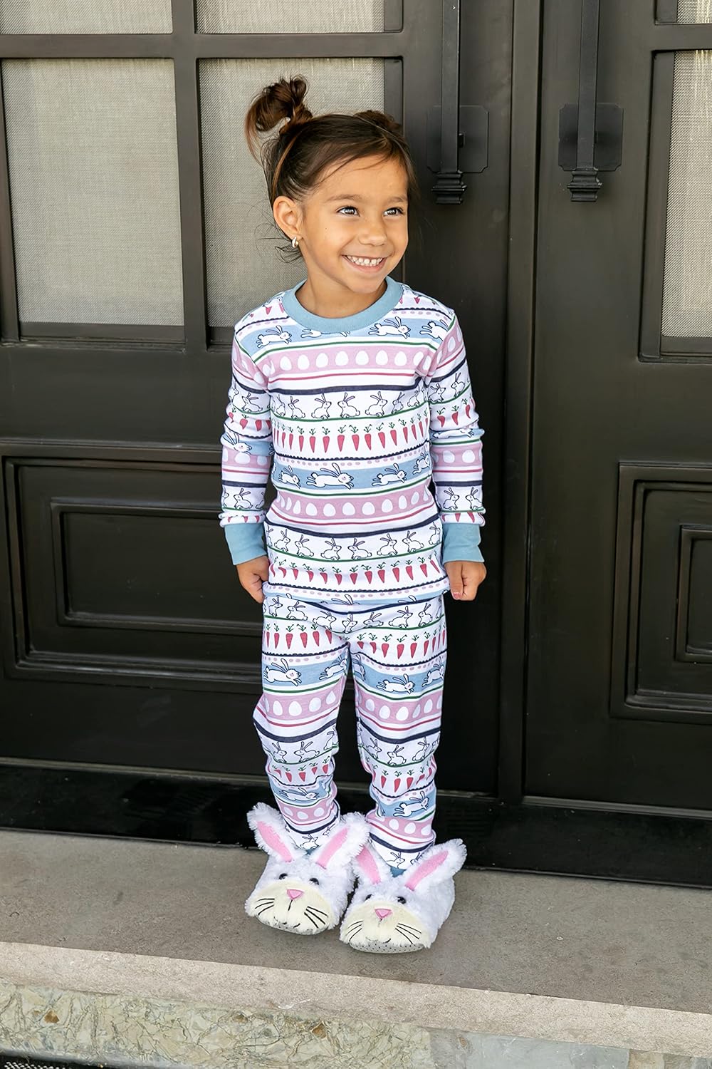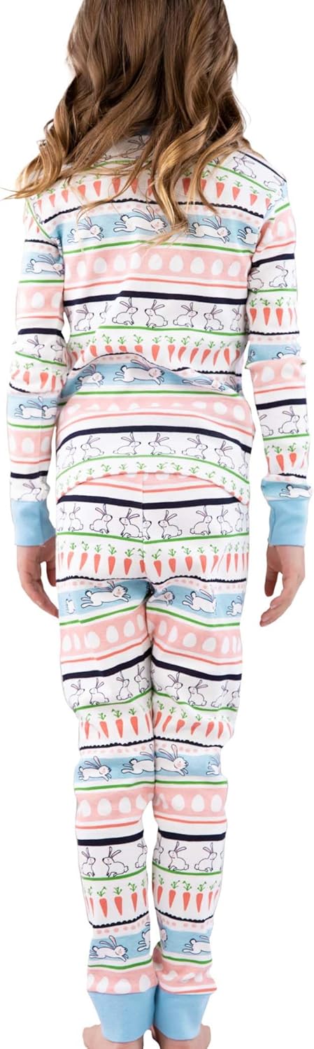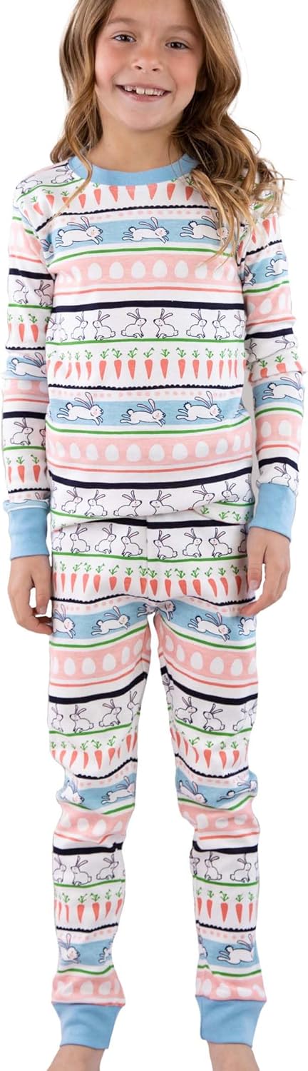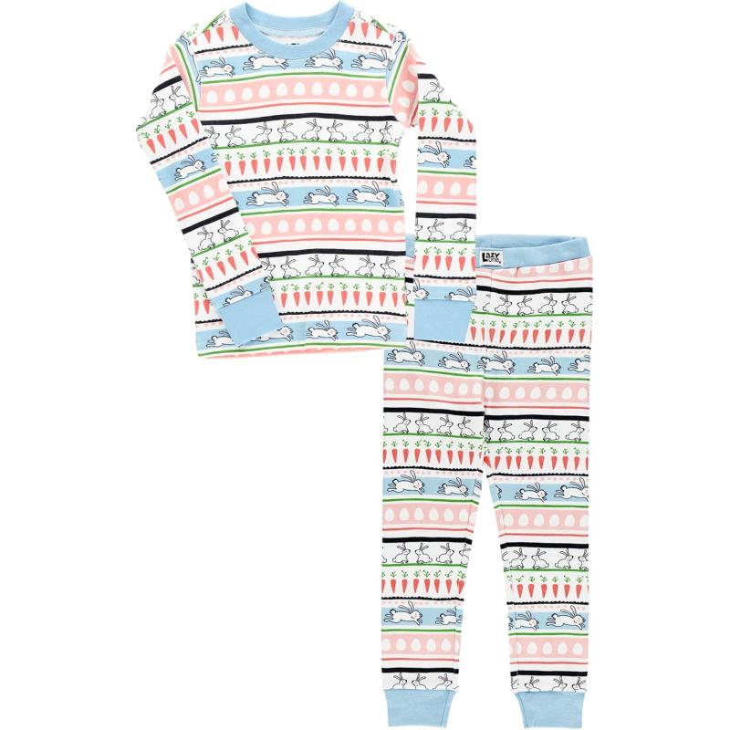 Lazy One Warm Long-Sleeve PJ Sets for Girls and Boys, Funny Animal Kids' Pajama Sets, Cozy, Comfy(White Bunny Fair Isle Pajama Sets)