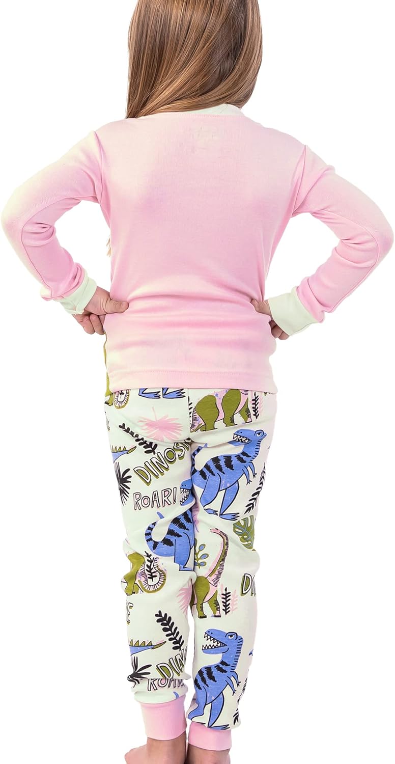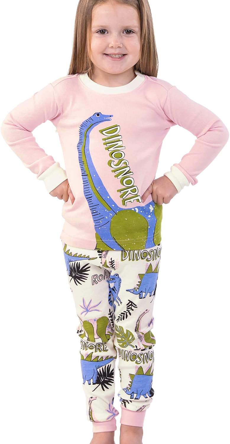 Lazy One Warm Long-Sleeve PJ Sets for Girls and Boys, Funny Kids' Pajama Sets, Cozy, Comfy(Dinosnore Pink Pajama Sets)