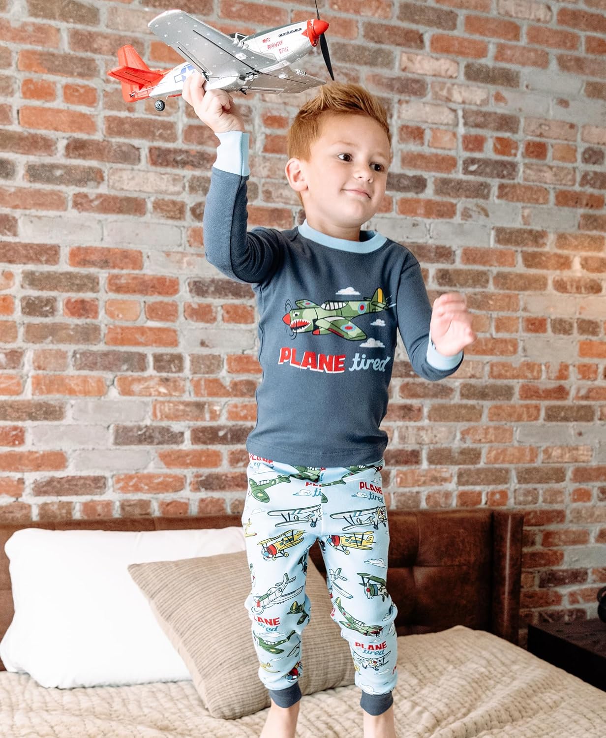 Lazy One Warm Long-Sleeve PJ Sets for Girls and Boys, Funny Kids’ Pajama Sets, Cozy, Comfy(Plane Tired Pajama Sets)