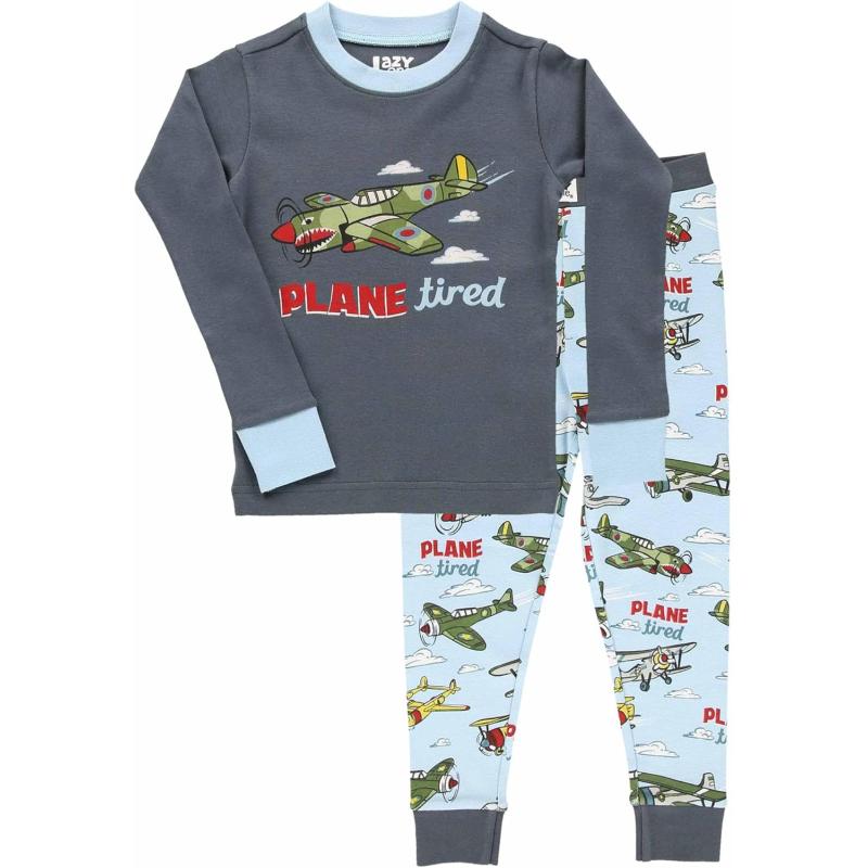 Lazy One Warm Long-Sleeve PJ Sets for Girls and Boys, Funny Kids' Pajama Sets, Cozy, Comfy(Plane Tired Pajama Sets)