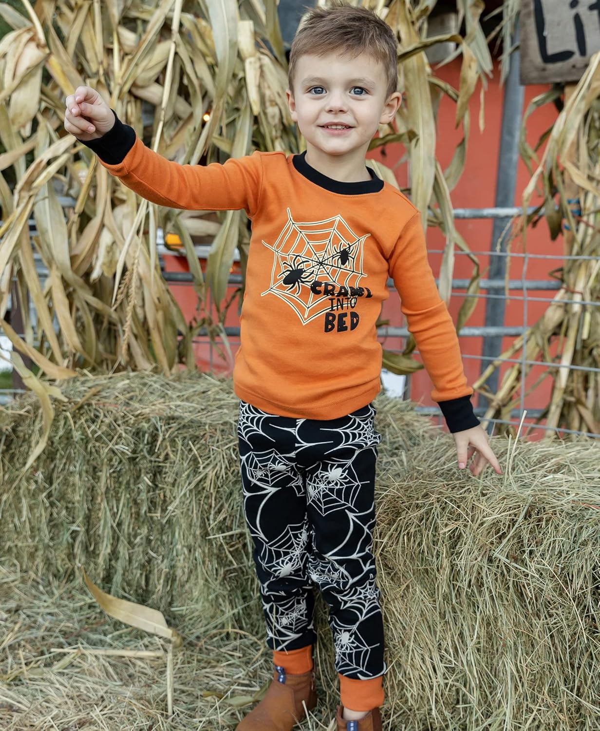Lazy One Warm Long-Sleeve PJ Sets for Girls and Boys, Funny Kids’ Pajama Sets, Cozy, Comfy(Spiderweb Pajama Sets)