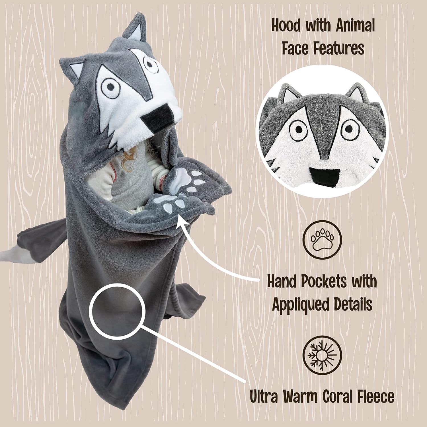 Lazy One Wearable Hooded Blanket for Kids Animal Hooded Blanket LionHowl of a Night Wolf Hooded Blanket