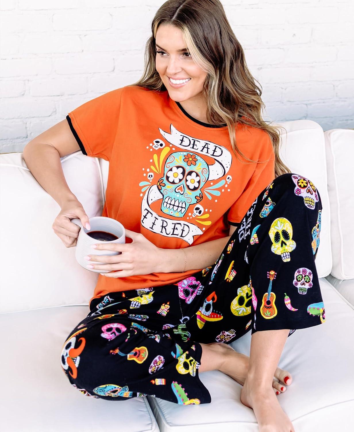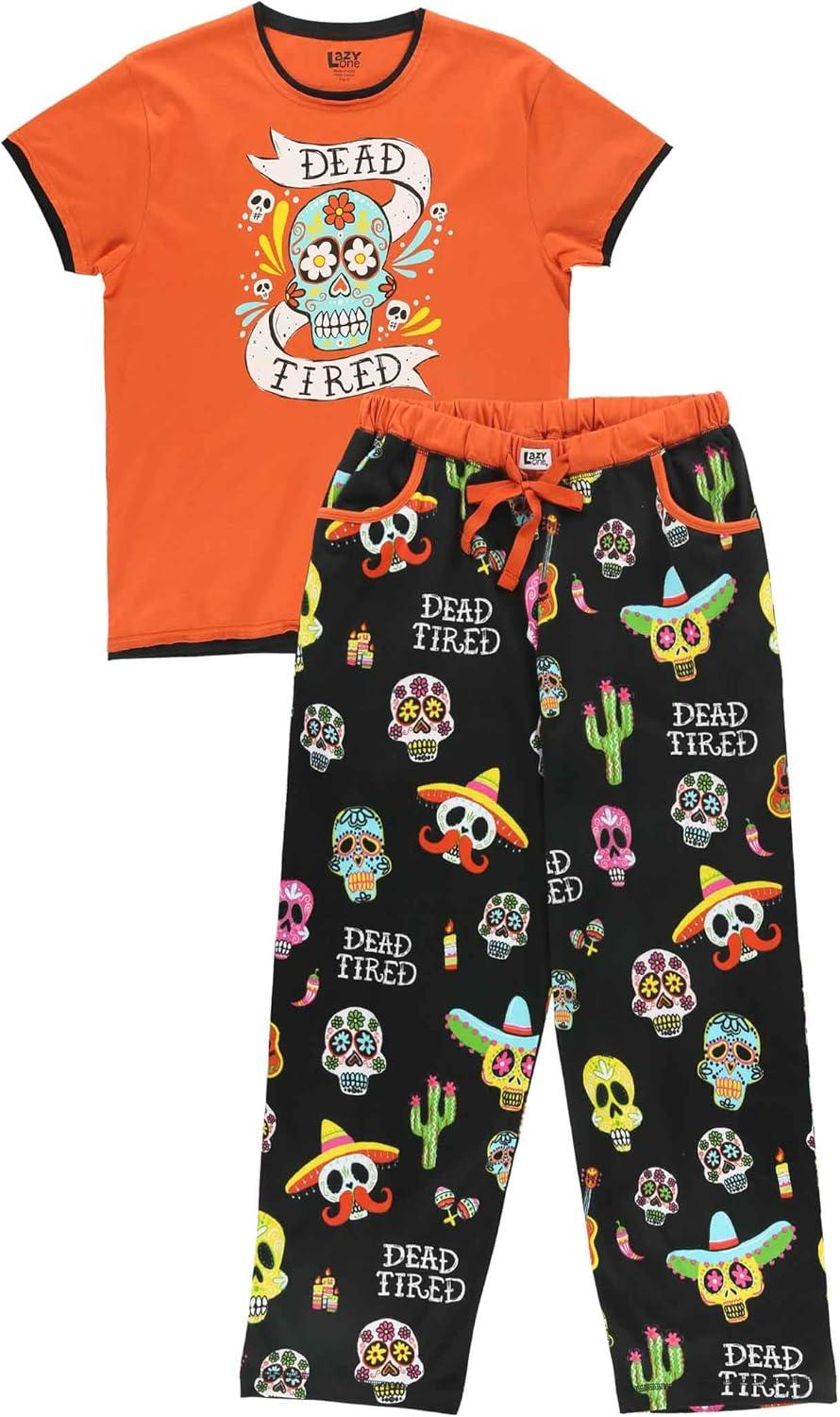 Lazy One Women’s Aquatic Pajama Set – Cute Ocean & Coastal Animal Loungewear for Comfort and Fun(Dead Tired Orange Womens Pj Set)
