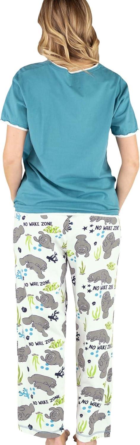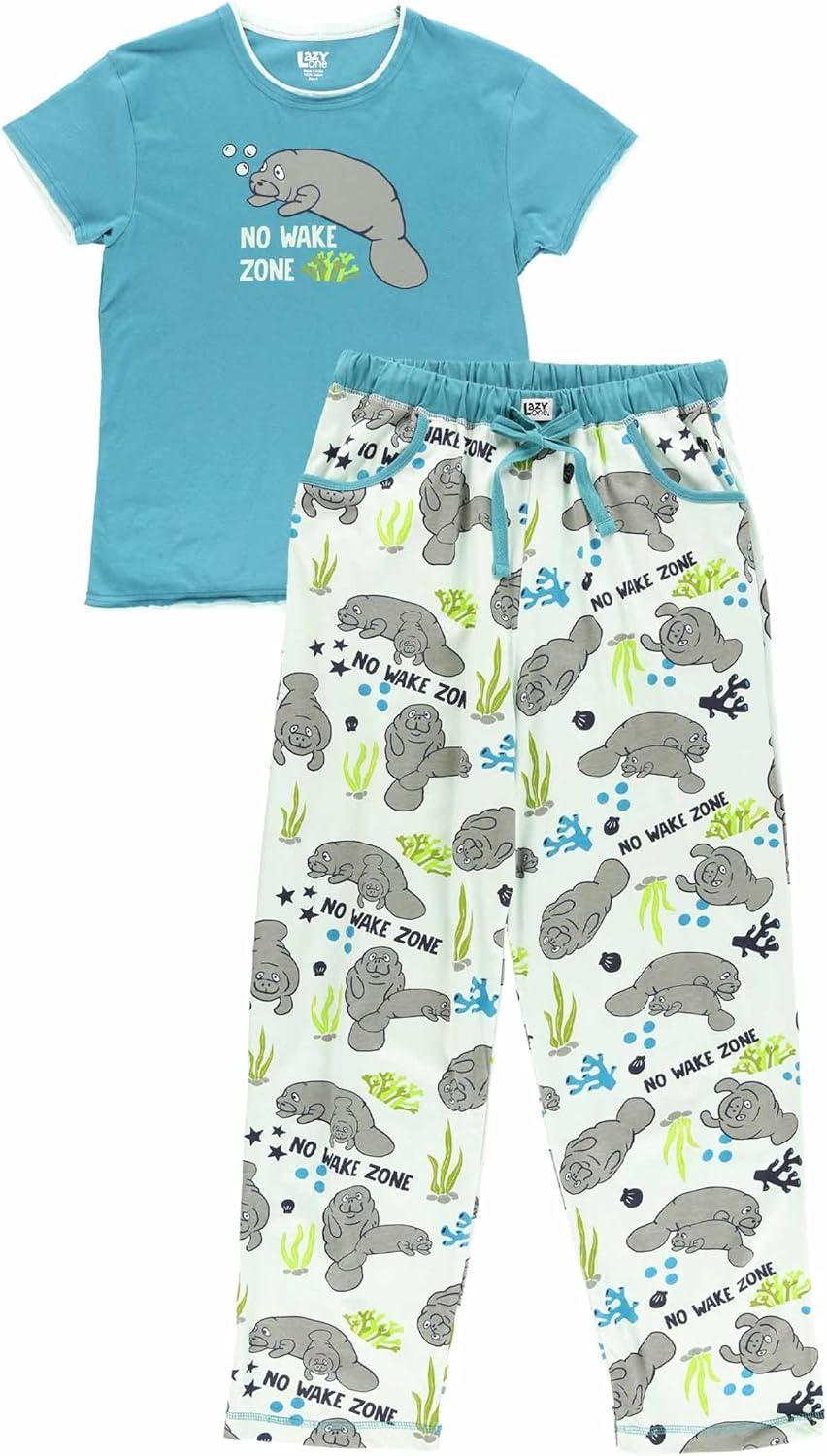 Lazy One Women’s Aquatic Pajama Set – Cute Ocean & Coastal Animal Loungewear for Comfort and Fun(No Wake Zone Manatee Pajama Set)