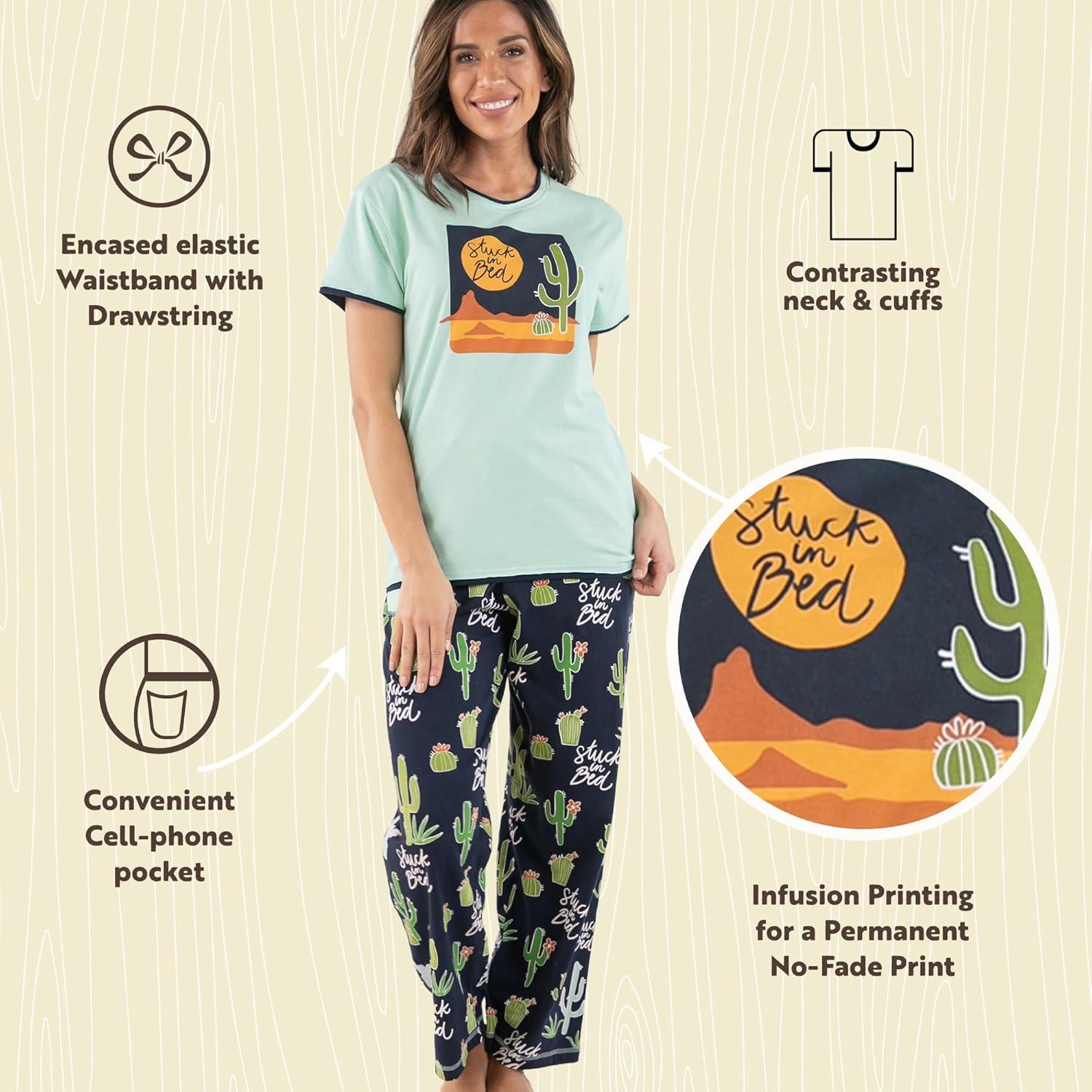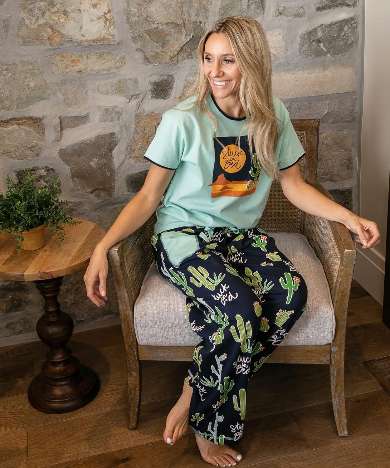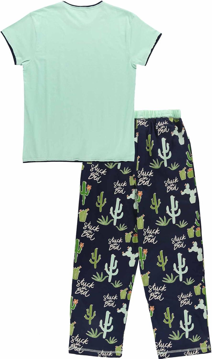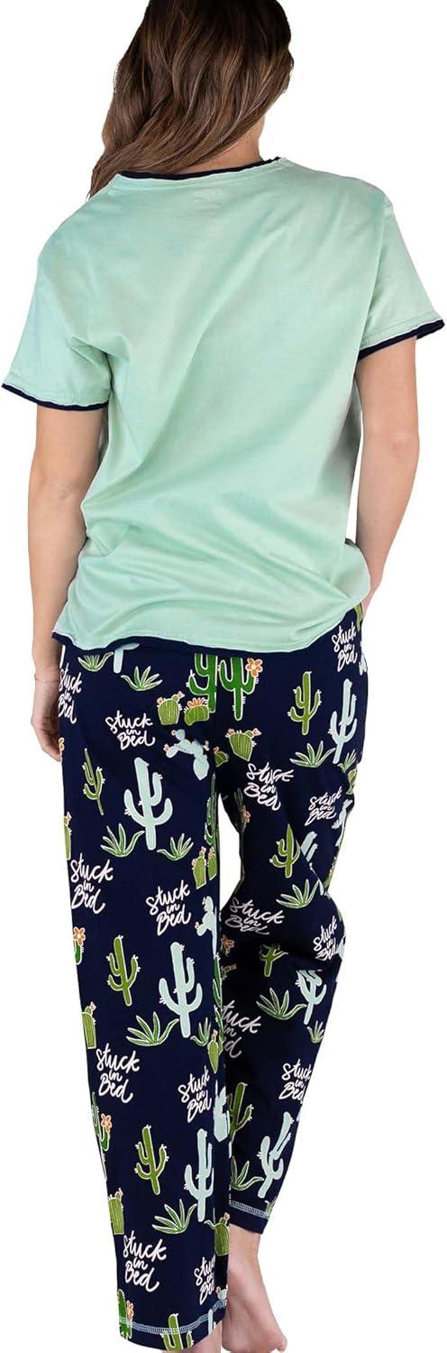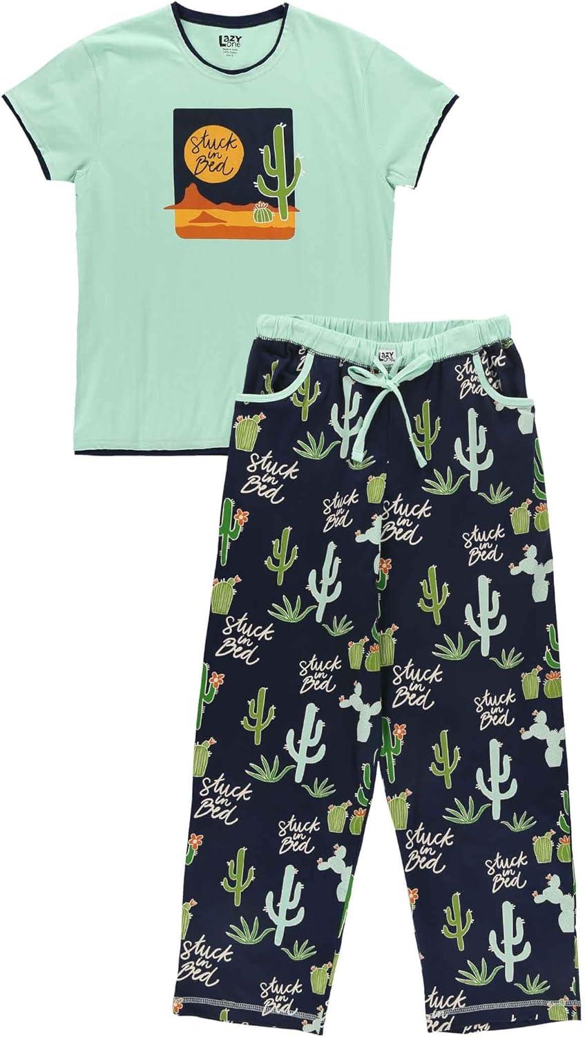 Lazy One Women’s Aquatic Pajama Set – Cute Ocean & Coastal Animal Loungewear for Comfort and Fun(Stuck in Bed Cactus Pajama Set)