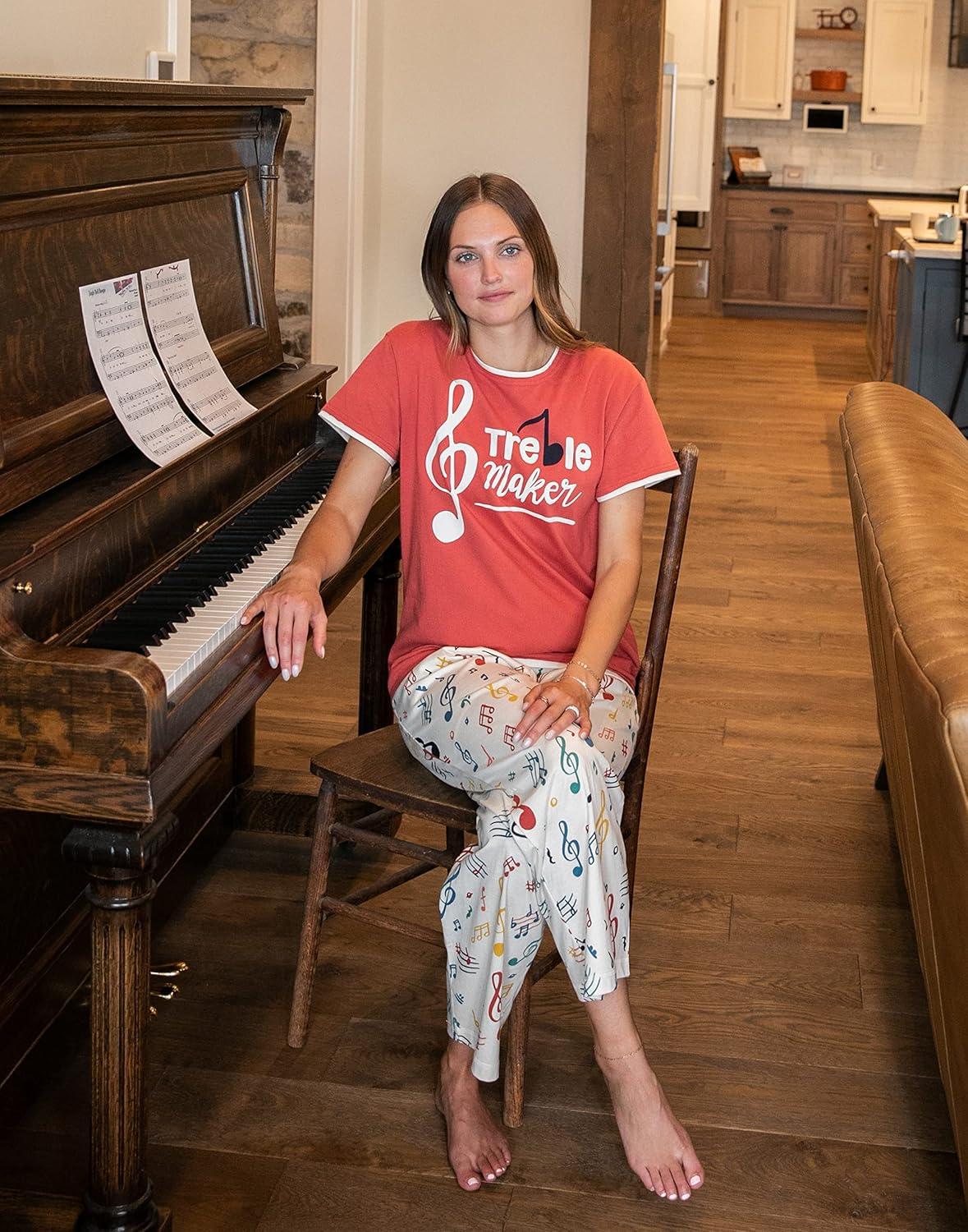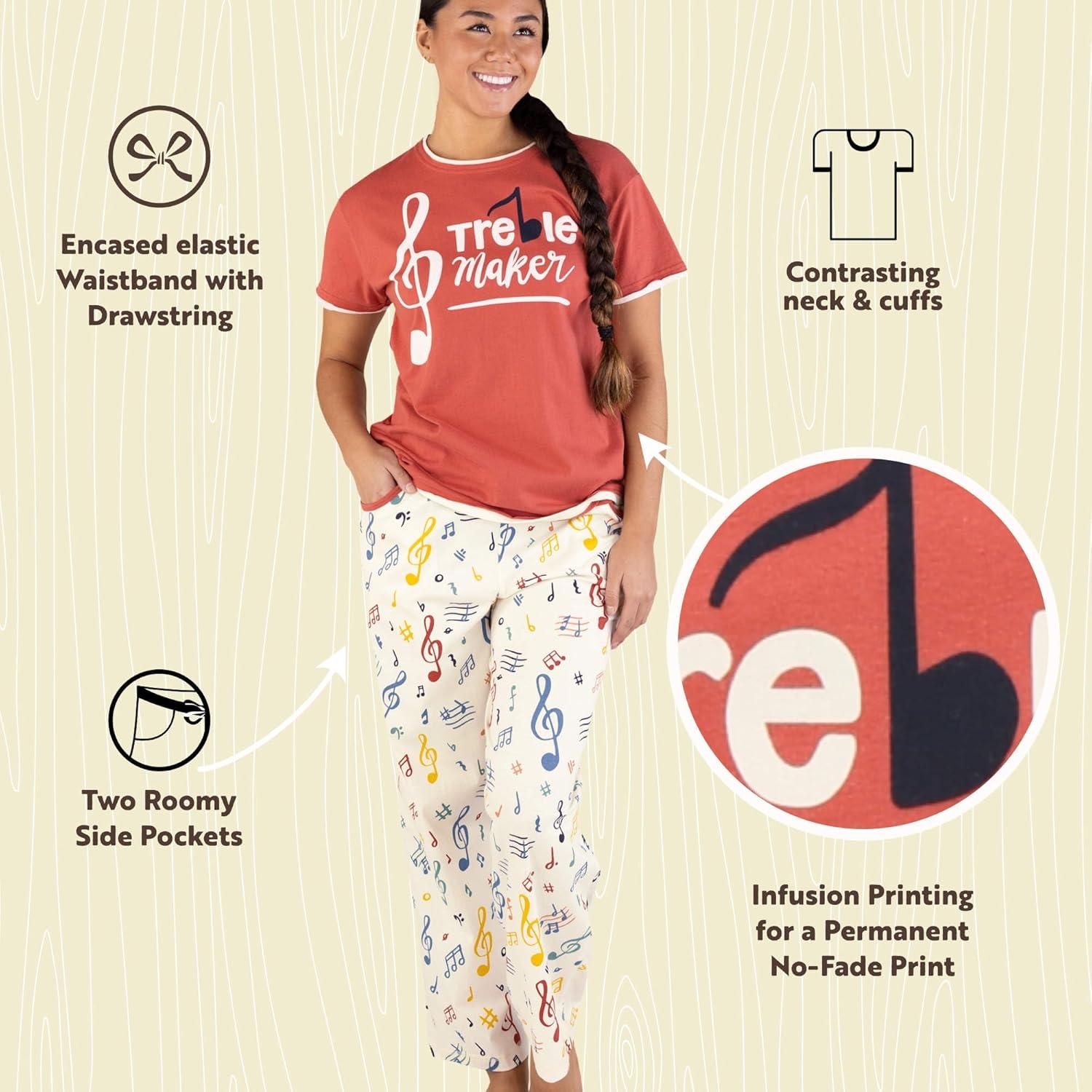 Lazy One Women’s Aquatic Pajama Set – Cute Ocean & Coastal Animal Loungewear for Comfort and Fun(Treble Maker Pajama Set)