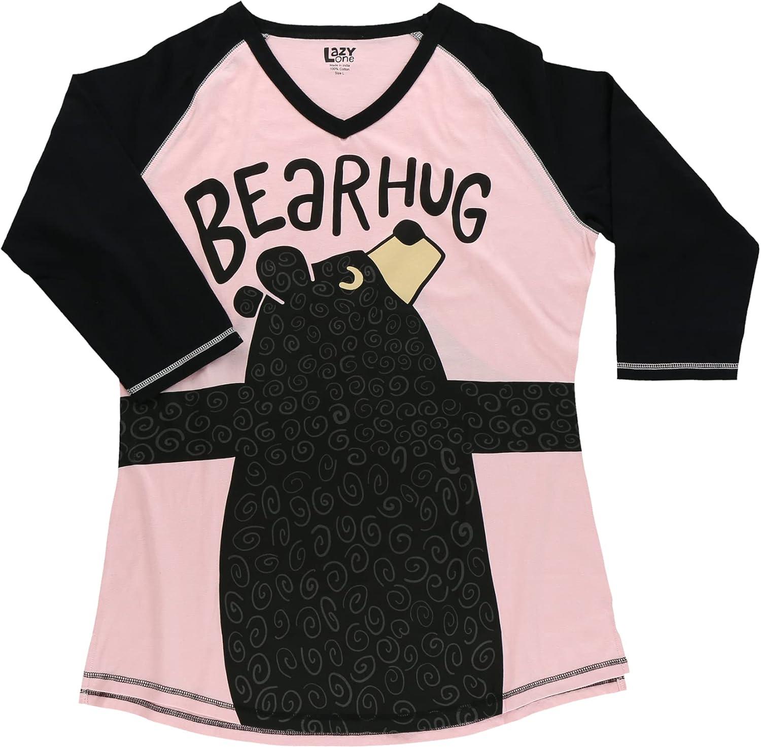 Lazy One Women's Leggings and Tees, Pajama Separates, Cozy Loungewear for Women(Bear Hug Womens Pajama Shirt)