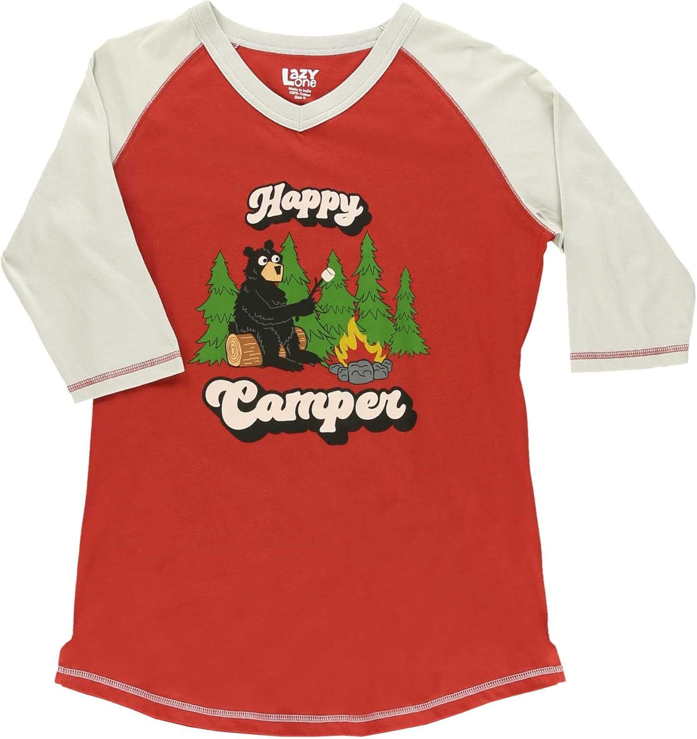Lazy One Women's Leggings and Tees, Pajama Separates, Cozy Loungewear for Women(Happy Camper Womens Pajama Shirt)