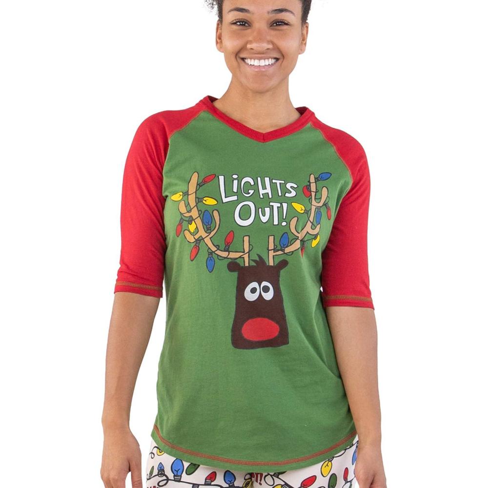 Lazy One Women’s Leggings and Tees, Pajama Separates, Cozy Loungewear for Women(Lights Out! Womens Pajama Shirt)