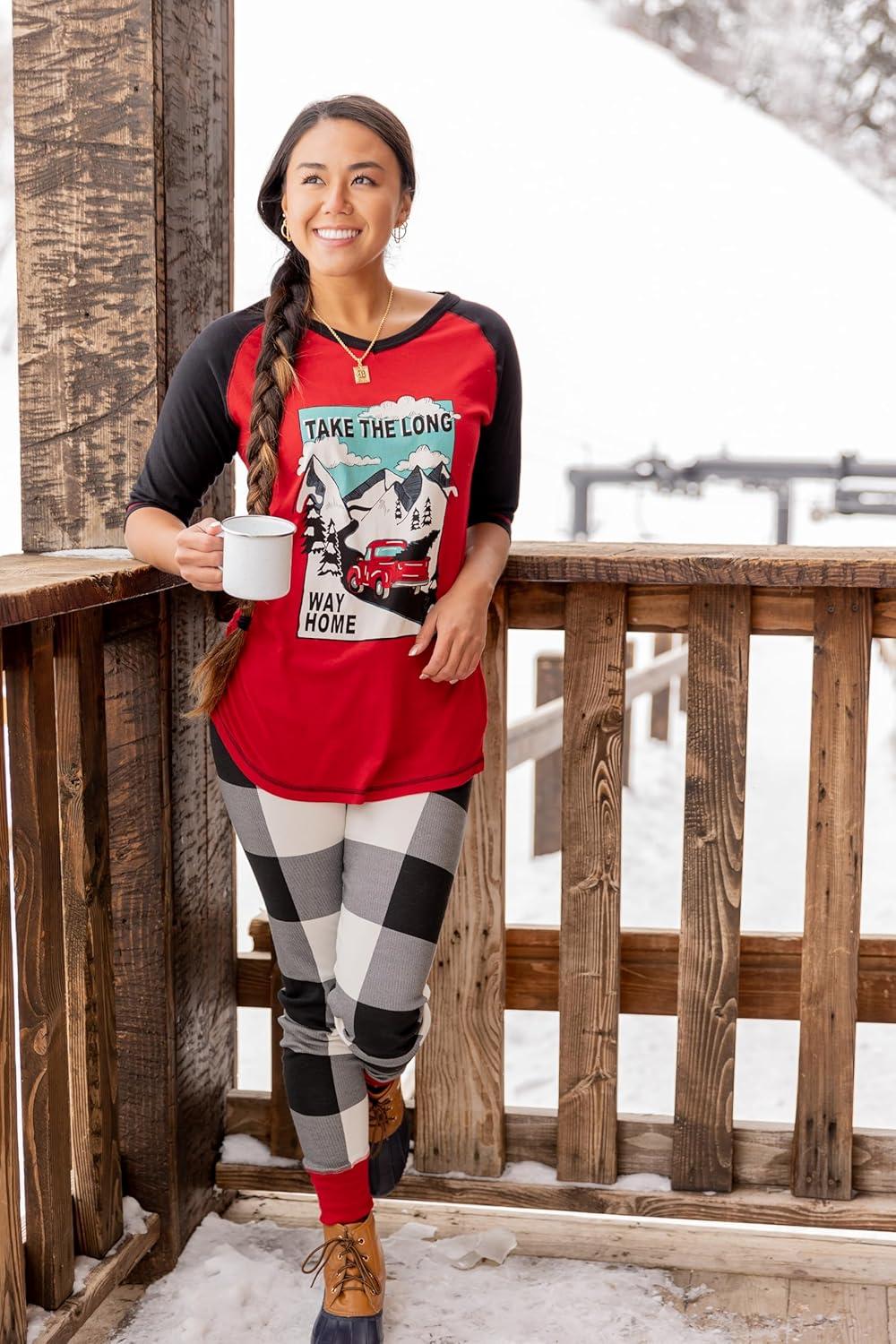 Lazy One Women’s Leggings and Tees, Pajama Separates, Cozy Loungewear for Women(Take the Long Way Pajama Shirt)
