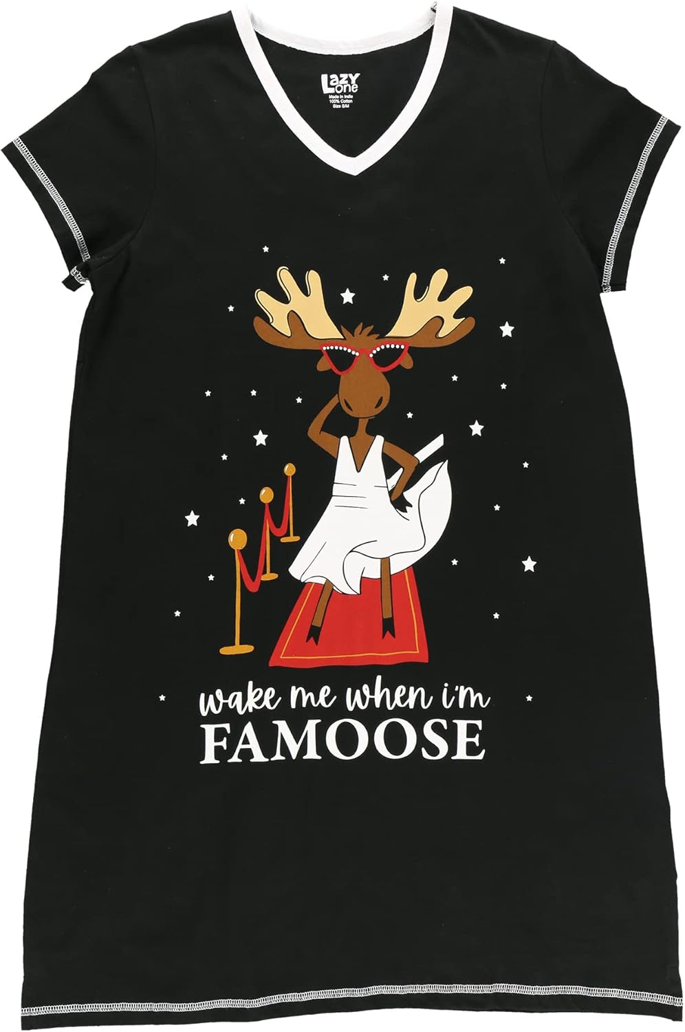 Lazy One Women's Nightgown, Funny V-Neck Sleep Shirt for Women, Bear & Moose Pajama Shirts(Famoose Nightshirt)