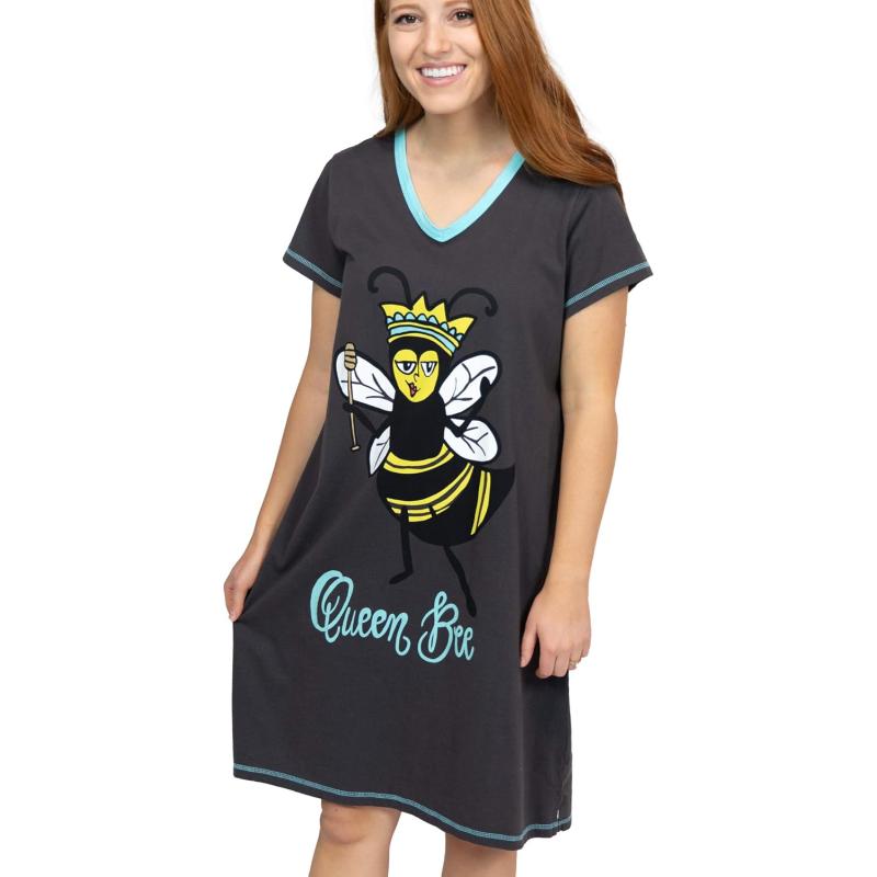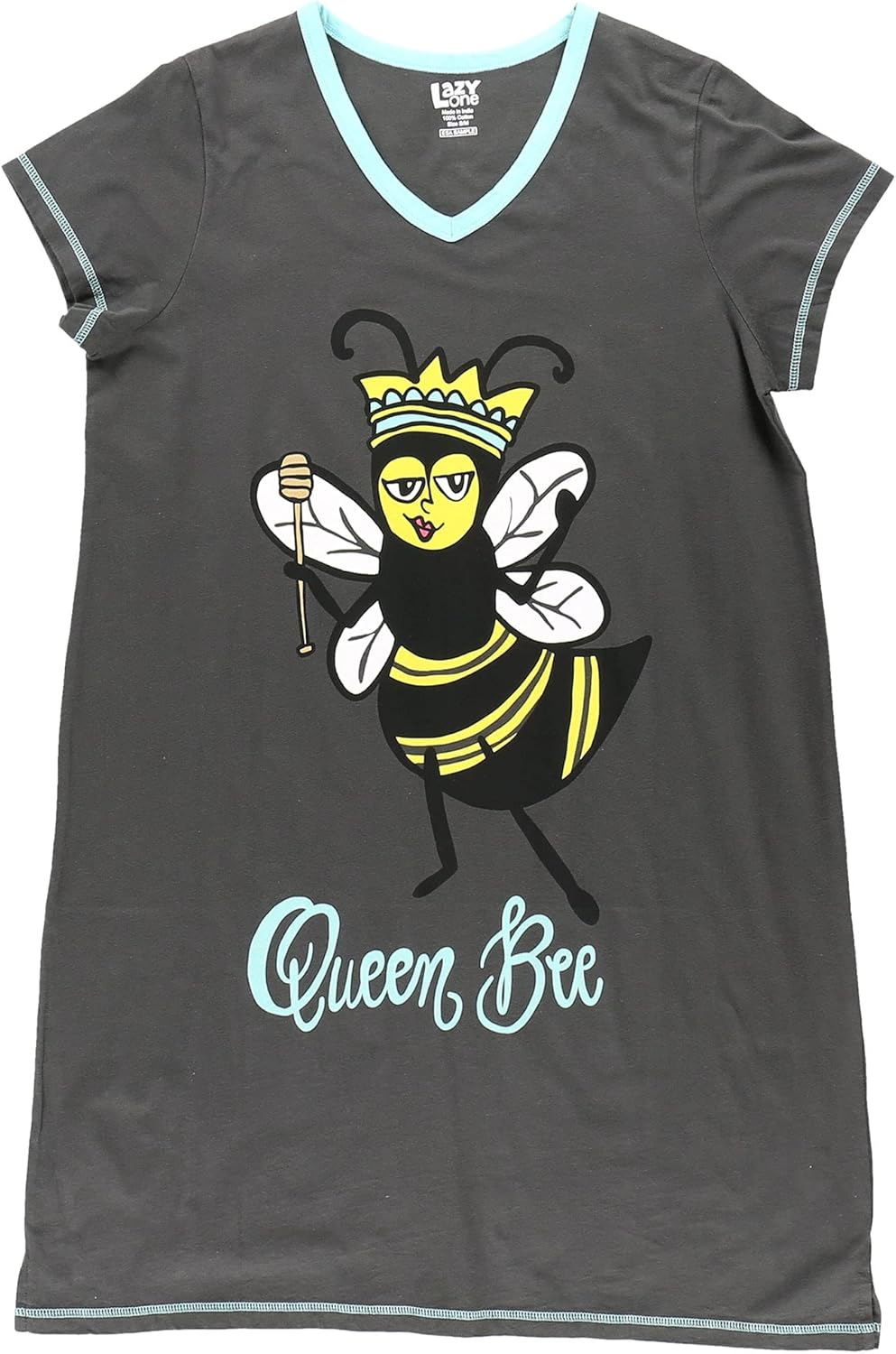 Lazy One Womens Nightgown Funny VNeck Sleep Shirt for Women Novelty Pajama ShirtQueen Bee Nightshirt