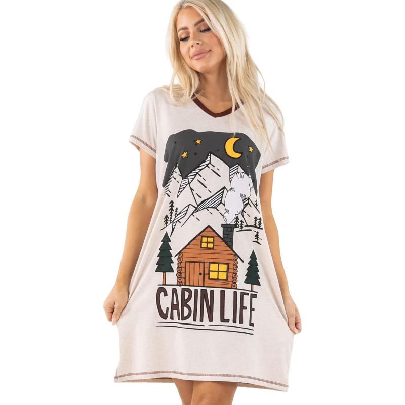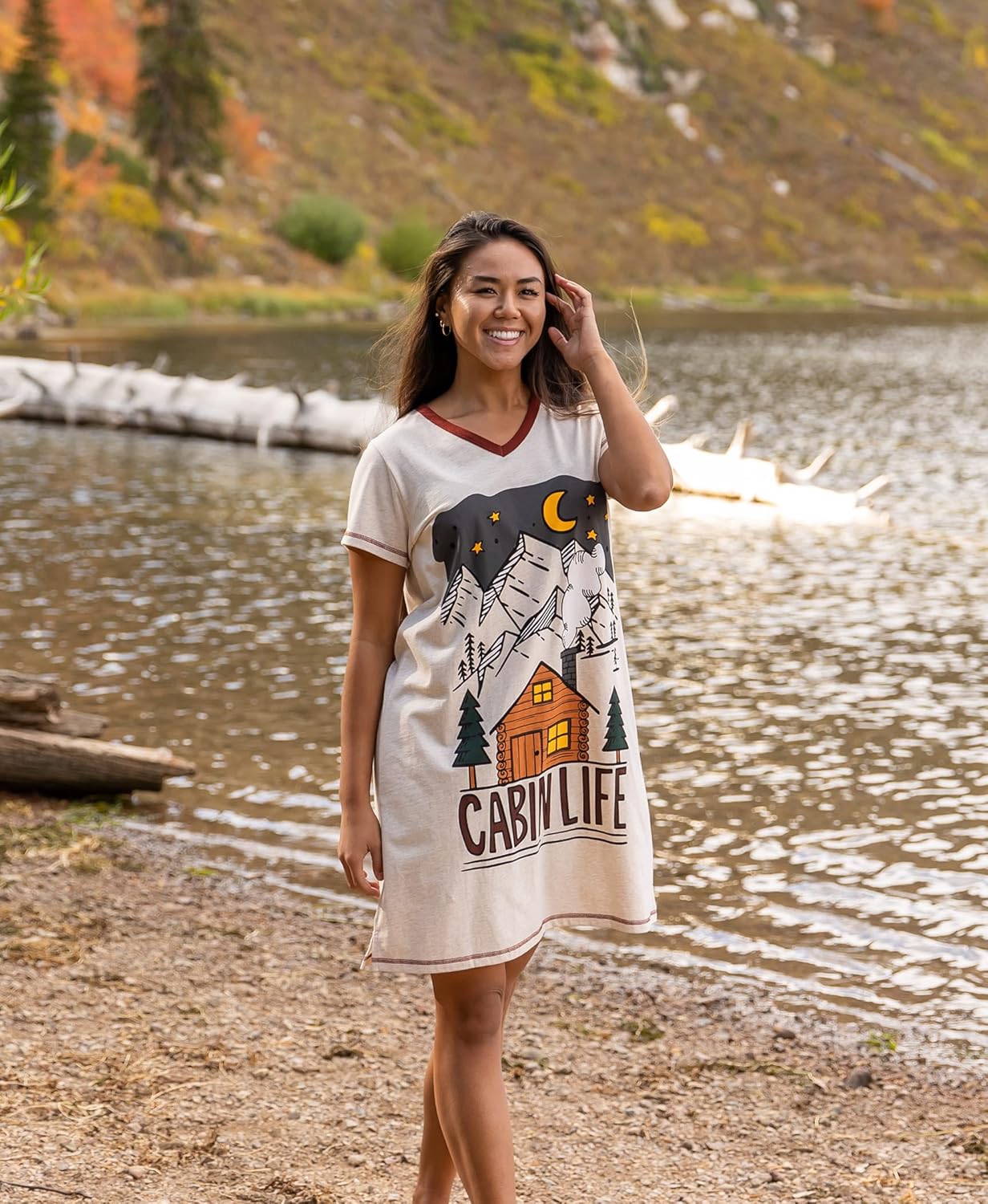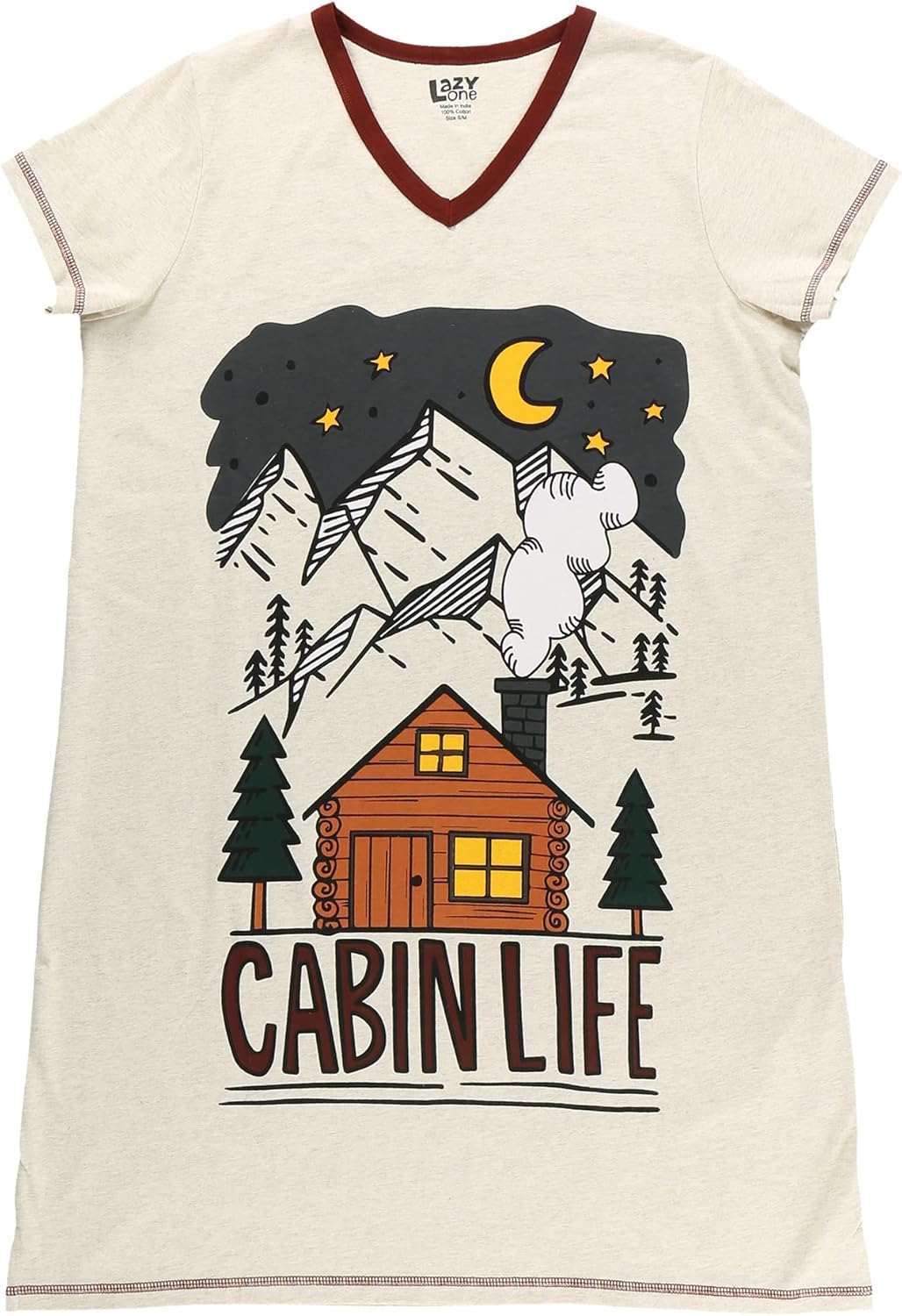 Lazy One Womens Nightgown Funny VNeck Sleep Shirt for Women Novelty Pajama ShirtsCabin Life Nightshirt