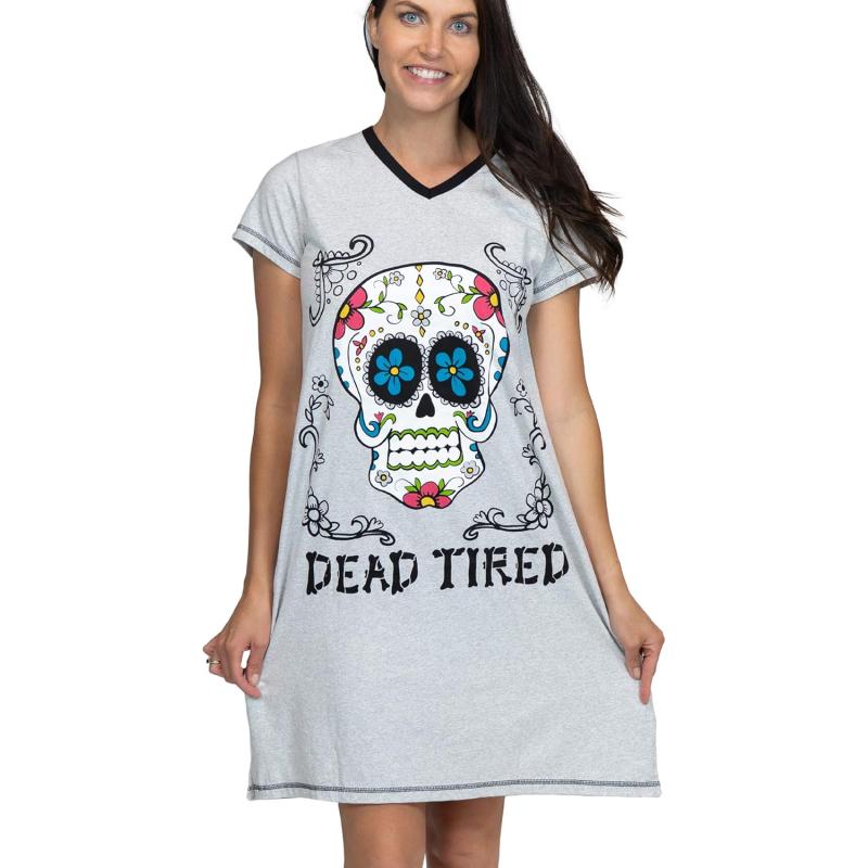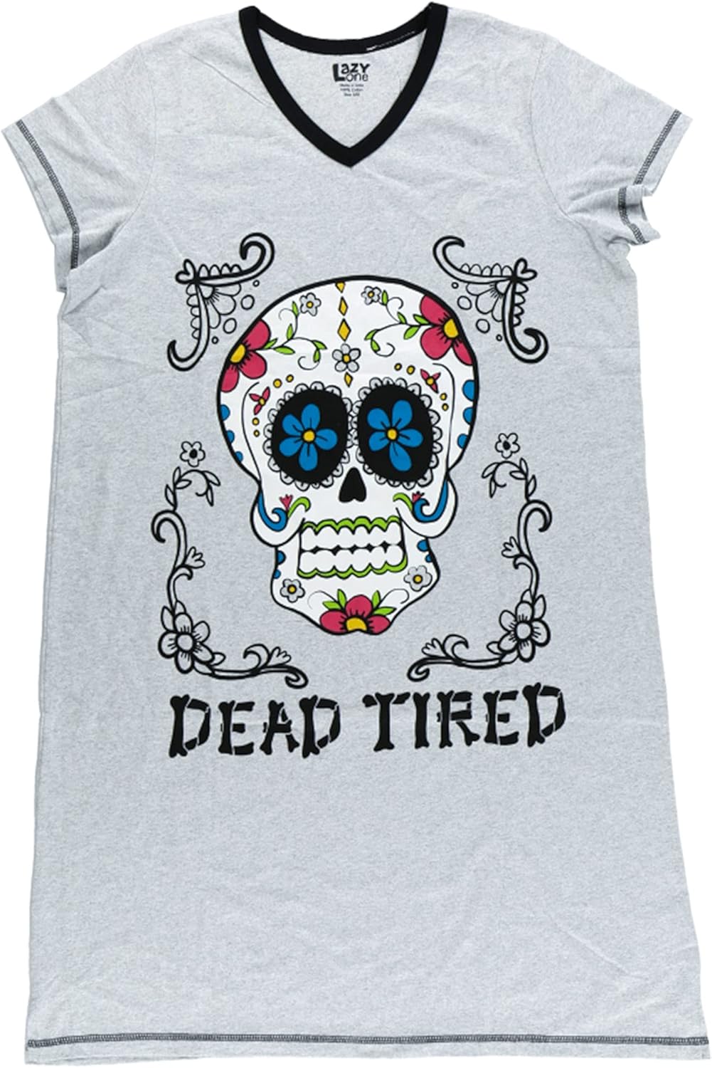 Lazy One Womens Nightgown Funny VNeck Sleep Shirt for Women Novelty Pajama ShirtsDead Tired Sugar Skull Nightshirt