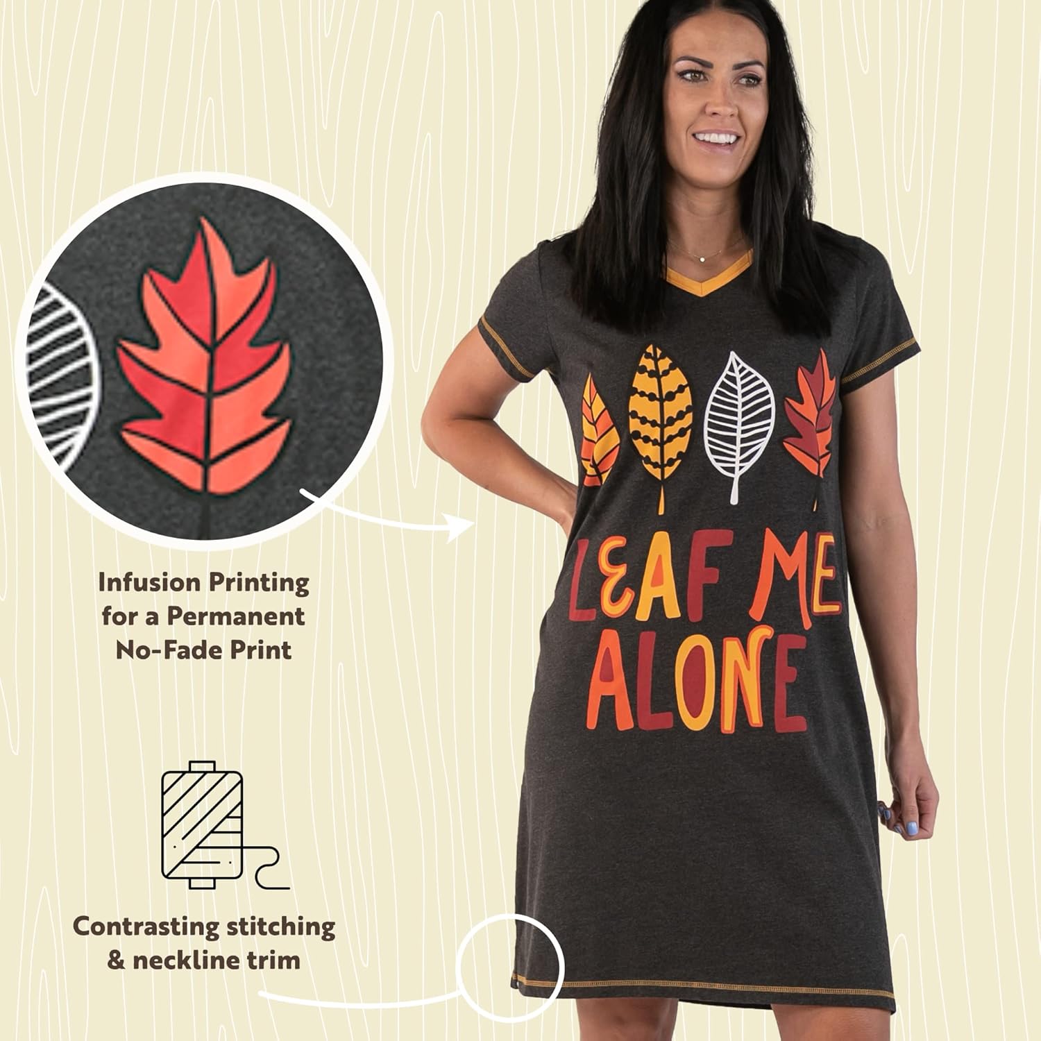 Lazy One Women’s Nightgown, Funny V-Neck Sleep Shirt for Women, Novelty Pajama Shirts(Leaf Me Alone Nightshirt)