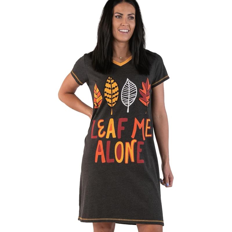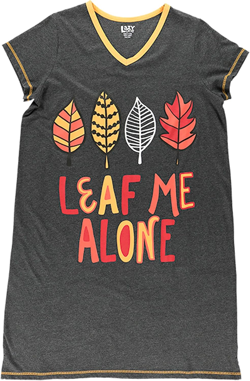 Lazy One Womens Nightgown Funny VNeck Sleep Shirt for Women Novelty Pajama ShirtsLeaf Me Alone Nightshirt